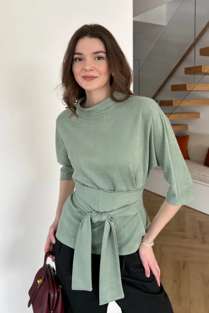 Блуза с поясом из вельвета - это символ элегантности и стиля. Ее сдержанный дизайн и пояс создают изящный силуэт, придают утонченность вашему образу. Эта блуза идеально подходит как для деловых встреч, так и для особых моментов, выражая вашу уверенность и характер. Цвет придает ей классическую универсальность, позволяя сочетать ее с различными нижними деталями вашего гардероба. Эта блуза станет надежным спутником вашего стиля.