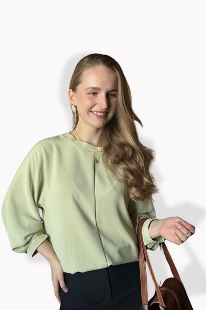 Джемпер свободного кроя из приятного к телу материала в цвете оливка. Рукава полной длины «летучая мышь». Блузка станет отличным дополнением к вашему гардеробу, позволяя создавать множество стильных комбинаций с юбками или брюками.