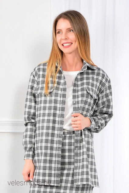 Рубашка свободного кроя «oversize» эффектно смотрится на женской фигуре. Сочетание «мужское-женское» тонко, но явно оттеняет сексуальность образа. Рубашку можно носить не только на футболку или гольф, но и как самостоятельную вещь. На спинке кокетка. Линия плеча спущена, рукава заканчиваются манжетами. На полочках накладные карманы с клапанами. Воротник отложной на отрезной стойке, застежка центральная бортовая на петли и пуговицы. Замеры: Рост фотомодели 166 см. Размер у фотомодели – 42. Длина изделия 65 – 69,5 см в зависимости от размера. Изделие подойдёт для роста 170 см.