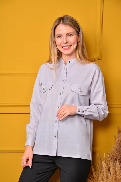 Прямого и свободного кроя рубашка в стиле «минимализм» особенно эффектно смотрится на женской фигуре. Сочетание «мужское-женское» тонко, но явно оттеняет сексуальность образа. Рубашку из тонкой высококачественной шерсти, можно носить не только как самостоятельную вещь, но и как второй слой на футболку или гольф. Обязательные детали таких моделей – спущенная линия плеча, простые крупные карманы на груди и рукава с манжетами. Воротник-стойка, спинка с кокеткой, застежка центральная бортовая на петли и декоративные пуговицы.