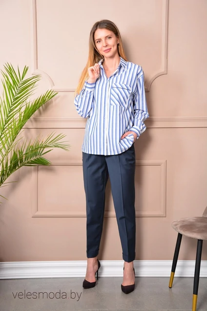Иметь в своем гардеробе рубашку в полоску – значит выглядеть незаурядно. Она подходит любым типам женских фигур, помогает удлинить, вытянуть фигуру. Такая вещь является базовой для создания модного лука, позволяет проявить индивидуальность и показать знание современных модных тенденций. Рубашка «оверсайз» мужского кроя без вытачек. Воротник отложной с кантом по отрезной стойке. Застёжка центральная на петли и пуговицы по планке. Полочку украшает накладной карман с кантом и декоративной печатью. На спинке кокетка. Низ прямой, по бокам разрезы. Рукава втачные длинные, низ рукавов оформлен притачной манжетой на две пуговицы. Замеры: Рост фотомодели 166 см. Размер у фотомодели – 42. Изделие подойдёт для роста 170 см.
