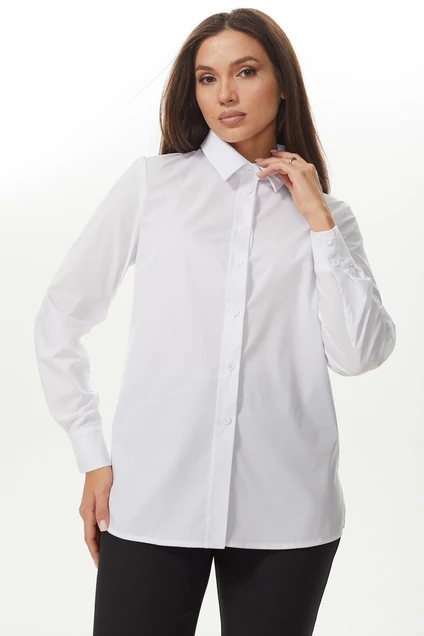Хлопковая рубашка Ma Сhérie прямого силуэта с разрезами в боковых швах. Воротник отложной на стойке. Застежка центральная на петли и пуговицы, спинка цельная. Рукав длинный втачной, одношовный с односторонними складками и притачной манжетой по низу.