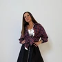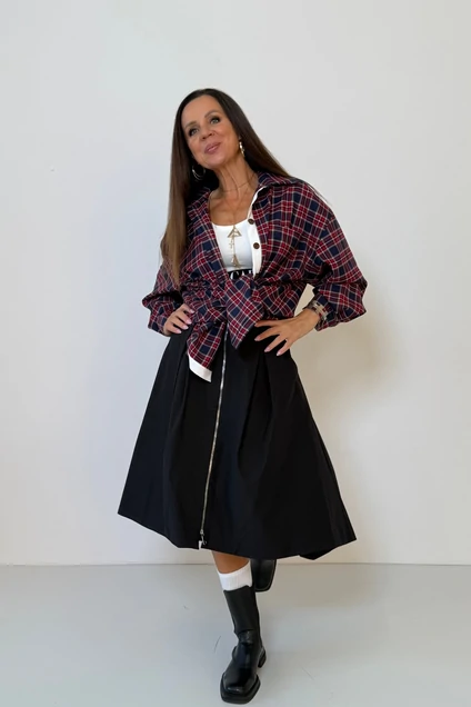 Блузка женская прямого силуэта с центральной бортовой застежкой на петли пуговицы,отложным воротником, со спущенным рукавом. Низ рукава обработан притачной манжетой и застежкой на петли пуговицы. Низ изделия ассиметричный.