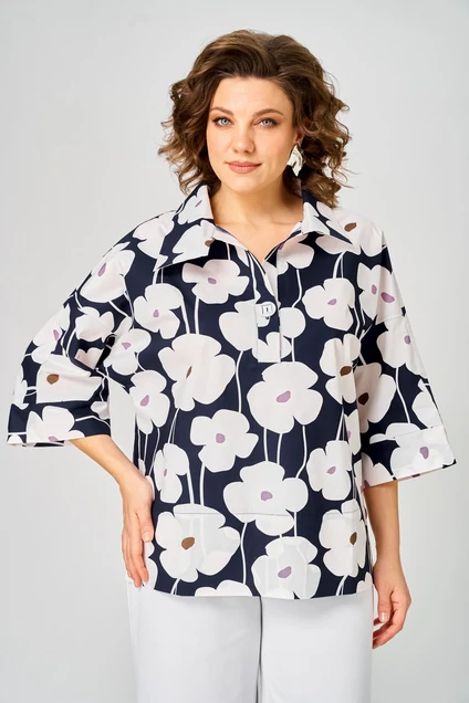 Блузка 786-1 василек Michel Chic — это воплощение стиля и комфорта, созданное для вашего гардероба. Коллекция бренда Michel Chic представляет вам эту повседневную модель, изготовленную из мягкого хлопка с добавлением спандекса, что обеспечивает легкость и эластичность. Свободный крой, подчеркнутый широким воротником и декоративным цветочным элементом на левом боку, придает изделию особую выразительность. Блузка идеально подходит для весны и лета, сочетая яркий васильковый цвет с динамичным фасоном, включающим спинку с запахом и фигурный низ. Длина изделия по спинке составляет 74 см, что делает эту модель отличным выбором для прогулок и встреч в непринужденной обстановке.