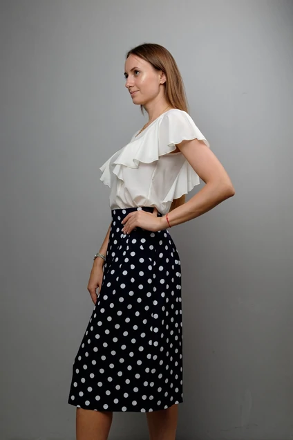 Характеристика: Блуза прямого силуэта. Декоративные крылышки. V-образная горловина.Длина изделия: 60 см