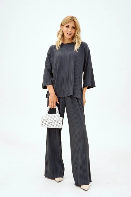 Блуза свободного кроя Рукав втачной три четверти, планка по горловине. Вырез круглый.