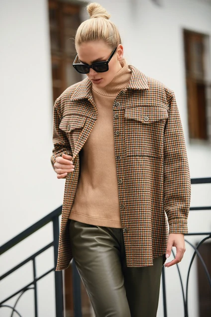 Рубашка прямого силуэта с фигурным низом. Выполнена застежка на петли и пуговицы. По горловине стояче-отложной воротник с отрезной стойкой. По спинке кокетка и склада на свободу движения. По переду выполнены накладные карманы. Рукав рубашечного кроя с манжетой по низу. По низу рукава выполнена шлица.