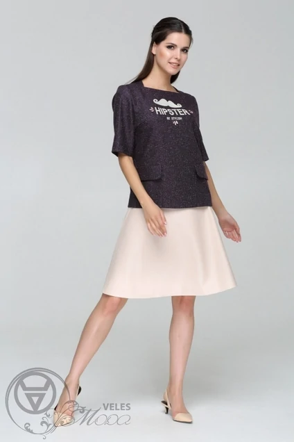 Блузка из костюмной ткани с бархатной печатью и карманами