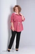 Блуза выполнена из блузочной ткани свободного кроя с цельнокроеным рукавом с отворотом, который подхвачен патой на пуговицу. По линии талии настрочена кулиска, в которую втянут шнур. Блуза имеет рубашечный воротник, застежка на пуговицы и на груди 2 больших накладных кармана. Низ блузы по центру спинки и переда слегка удлинен. Длина блузы по центру спинки 81 см. Длина рукава от горловины 66 см.