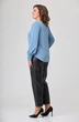 Блуза женская полуприлегающего силуэта втачного покроя. Блуза выполнена из струящейся блузочной ткани. Горловина округлой формы. Спинка цельная. Перед с вертикальным швом, на котором декоративно пришиты гладкие пуговицы в цвет. Они (пуговицы) являются акцентом данной модели. Низ блузки овальной формы, по переду слегка короче. По переду расположены нагрудные выточки идущие из бокового шва. Рукав длинный со сборкой по низу на манжету и три пуговицы. По середине рукава расположен шов переходящий в разрез соединяющийся по низу с помощью манжеты.