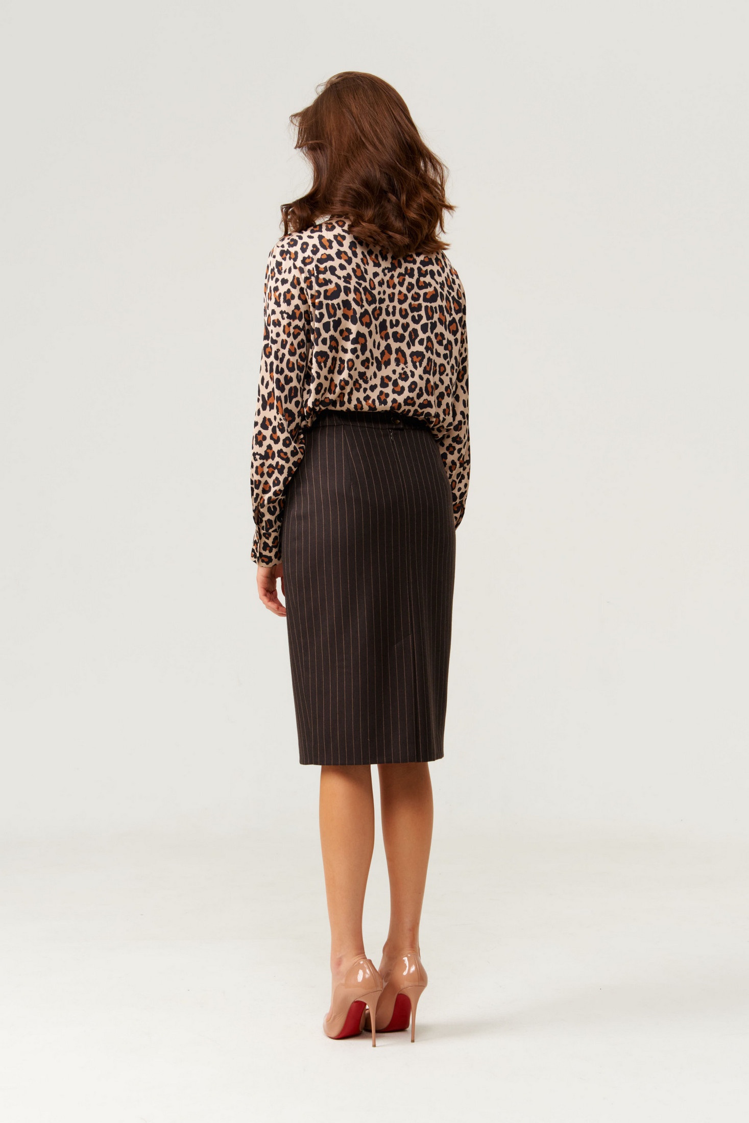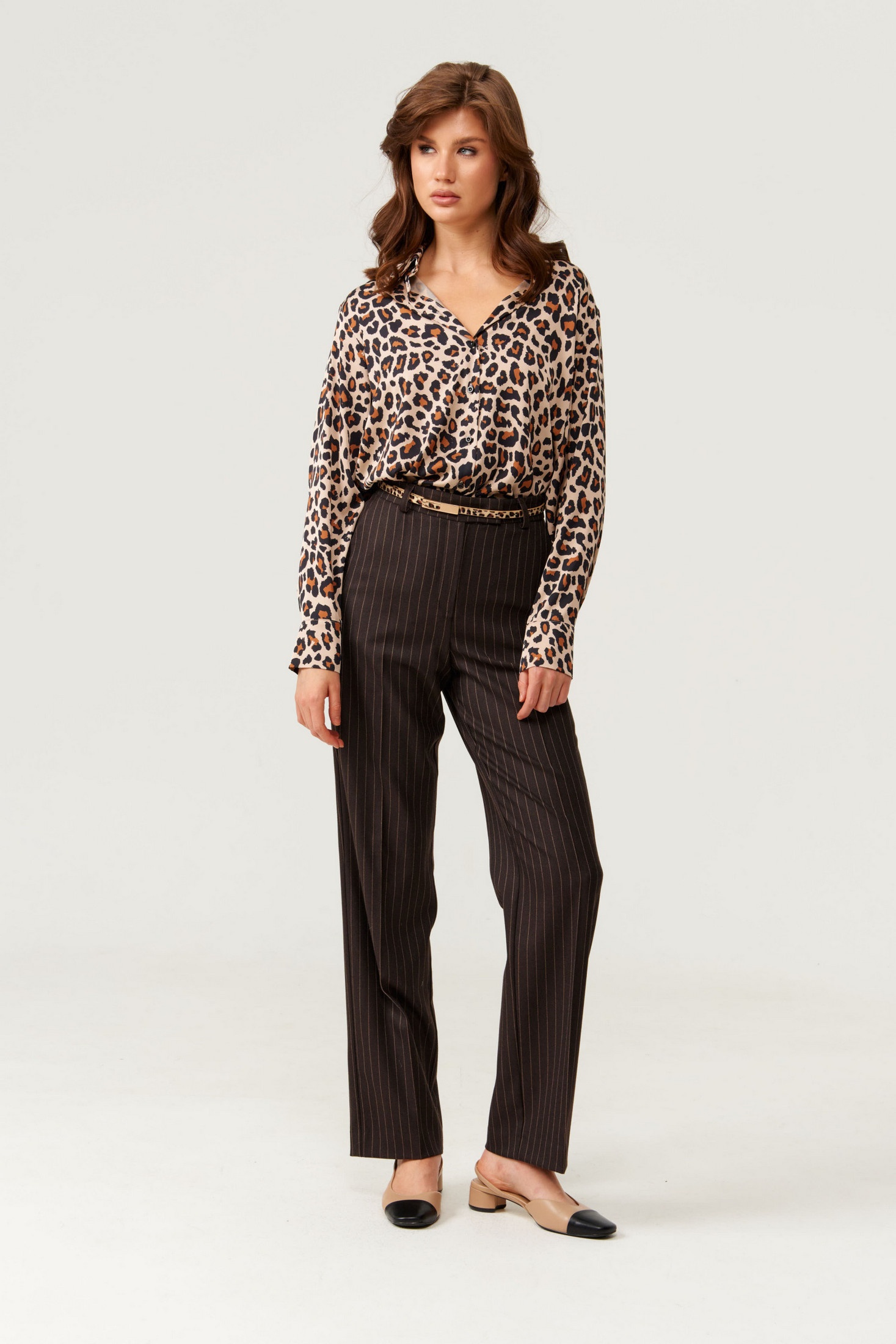 Эта стильная женская блузка бежевого оттенка в зверином принте идеально подойдет для повседневной носки. Выполненная в прямом силуэте, она обеспечивает комфорт и свободу движений. Ткань струящаяся, что придает изделию легкость и изящность. Перед с центральной бортовой застежкой на обметанные петли и пуговицы, а низ изделия выполнен с закругленным краем. Горловина оформлена классическим воротником с отрезной стойкой, а рукава завершены притачными манжетами с застежками на две обметанные петли и пуговицы — практично и стильно. Эта очень легкая и практичная блузка станет отличным выбором для ежедневных образов, сочетая комфорт с элегантностью и привлекательностью.