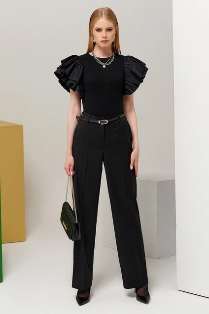 Стильное женское боди с круглым вырезом - тренд этого сезона. Блузка топ подчеркнёт вашу сексуальность, женственность. Модель боди топ с рюшами можно носить на каждый день с джинсами, с шортами, с классическими брюками или юбкой. Классическая блузка в чёрном цвете с воланами дополнит ваш базовый гардероб. Универсальная блузка-боди подойдёт для офиса, деловых встреч, ночных клубов, вечеринок, свиданий, на выход, для любого праздника, на день рождение. Трикотажная кофточка в виде слитного купальника выполнена из мягкого, эластичного материала облегающего кроя, сделает ваш образ более элегантным, подойдёт беременным. Многофункциональная блузка-боди прекрасный вариант для занятий танцами.