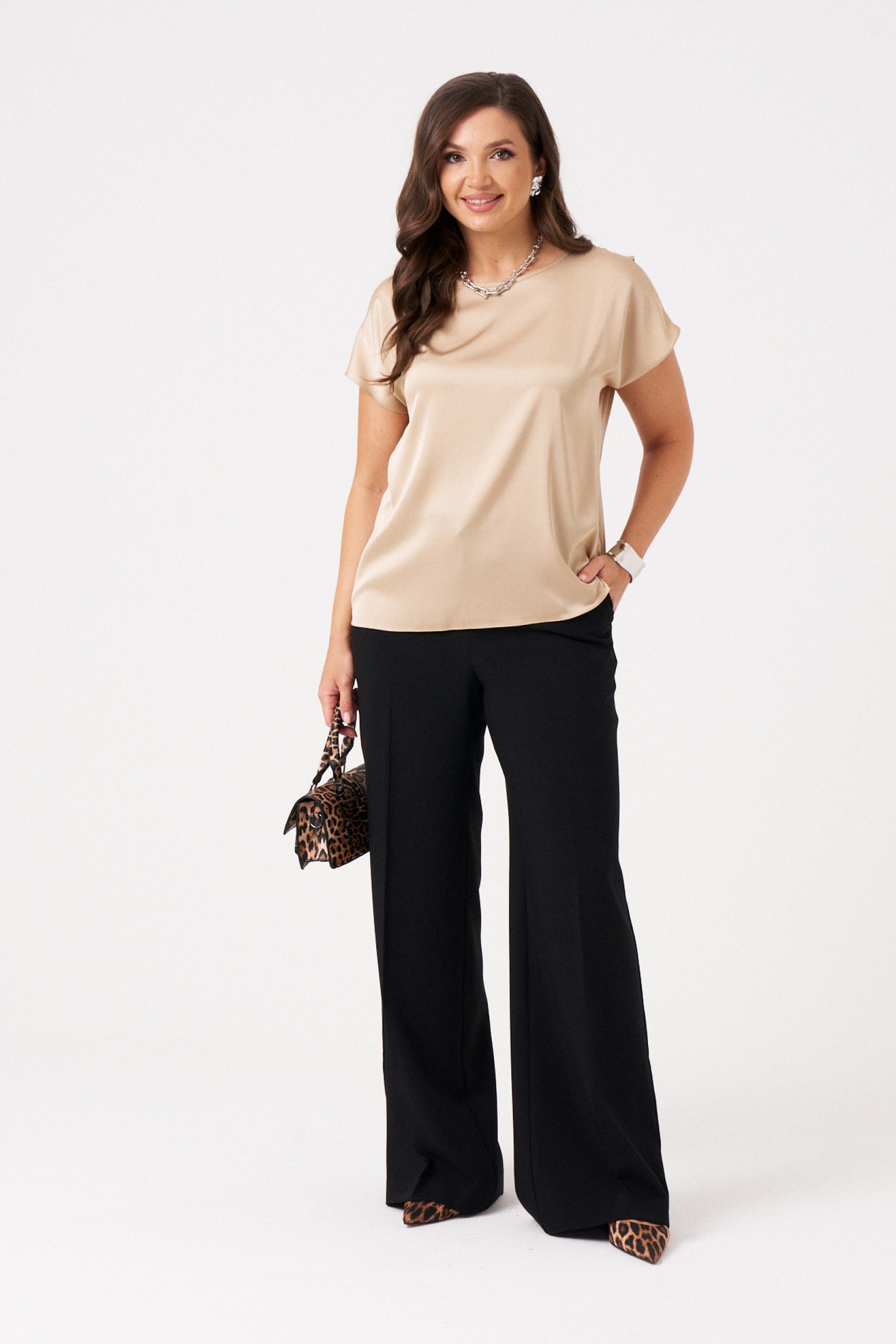 Эта женская базовая блуза прямого силуэта бежевого оттенка — универсальный и стильный выбор для вашего гардероба. Она отлично сочетается с юбками, брюками и джинсами, создавая разнообразные образы для повседневной носки. Легкая и комфортная, блуза выполнена из приятной на ощупь ткани с гладкой поверхностью, которая не парит даже в жаркую погоду. Свободный крой с опущенной линией плеча и короткими цельнокроеными рукавами обеспечивает безупречную посадку и комфорт. Обработанная узкой планкой горловина придает изделию аккуратный вид. Ее легко стирать в машинке, она быстро сохнет и сохраняет форму после стирки. Купите эту блузу и создавайте множество стильных образов для любого дня!