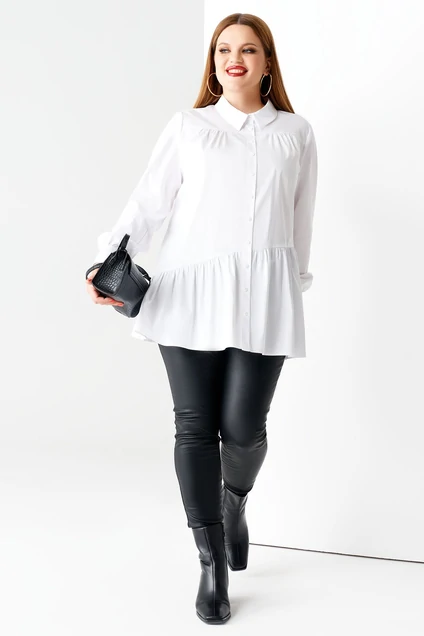 Стильная и приятная к телу хлопковакя блузка на каждый день. Косые резы со сборками по спинке и переду создают лёгкий свободный силуэт. Вукава втачные расширены книзу и присборены на манжет. Застёжка центральная спереди на планку с петлями и пуговицами. Воротник рубашечный ,отложной,на стойке. Блузка удлинённая и шикарно смотрится с узкими брюками. Прекрасная блузка на каждый деньи для офиса для стильной,энергичной девушки.