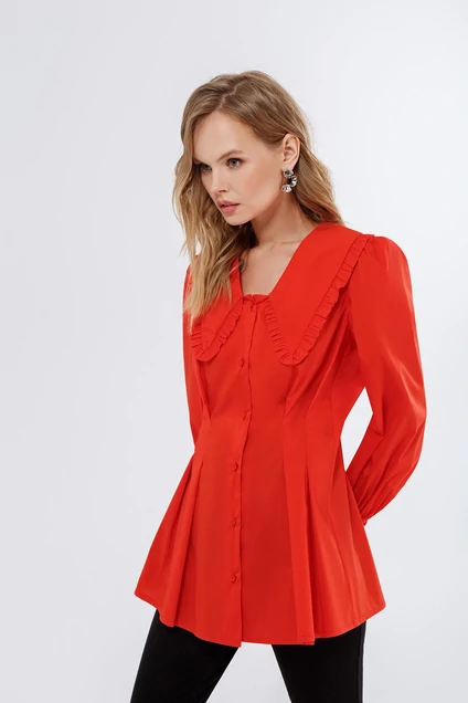 Хлопковая рубашка с отложным декоративным воротником. Детали: X- силуэт, перед и спинка с застроченными складками по талии, рукава длинные втачные со сборкой, притачные манжеты. Данная модель также представлена, как двойка под арт. 2006