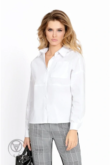Хлопковая текстильная рубашка свободного покроя с фигурным низом и разрезами по бокам. Детали: прямой силуэт, спущенная линия плеча, рубашечный воротник, перед с нагрудным карманом, застежка центральная на петли и пуговицы, рукава длинные на манжетах Дл. по спинке около 60/64см; дл рукава+ плечо около 44,5+15=59,5см