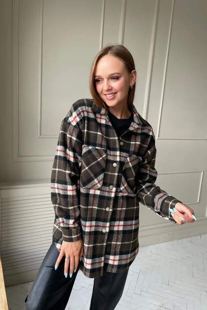 Блуза женская, теплая, с добавлением шерсти.Рукав спущенный, спереди функционирующие карманы. Рубашка застегивается на пуговицы спереди.