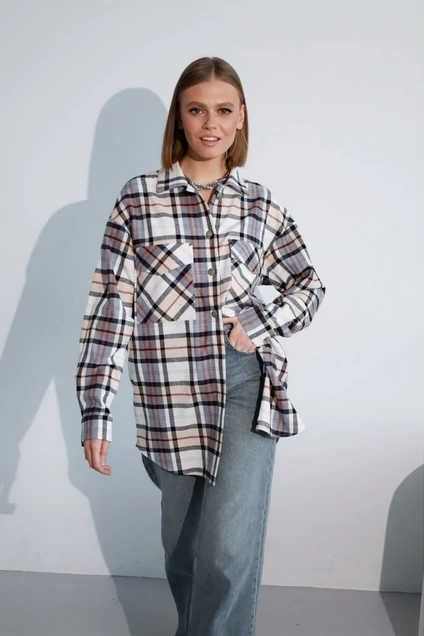 Рубашка женская, теплая.Рукав спущенный, спереди функционирующие карманы. Рубашка застегивается на пуговицы спереди.