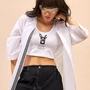 Элегантная женская блуза в черно-белой цветовой гамме представляет собой идеальное сочетание классики и модных деталей. Блуза выполнена в прямом силуэте с внимание к каждой детали: спущенная линия плеча добавляет изящества, а кокетка контрастного белого цвета спереди украшена вставками из кружева, создавая нежный и выразительный акцент. Застежка на пуговицы по потайной планке обеспечивает гладкий и аккуратный вид. Двушовные рукава завершаются манжетами контрастного цвета, что придает блузе особый шарм. Воротник-стойка со скругленными концами также выполнен в контрастном белом цвете и дополнен декоративными пуговицами-стразами, что добавляет блузе изысканности и элегантности. Эта блуза станет исключительным дополнением к любому гардеробу, подчеркивая утонченный вкус своей владелицы.