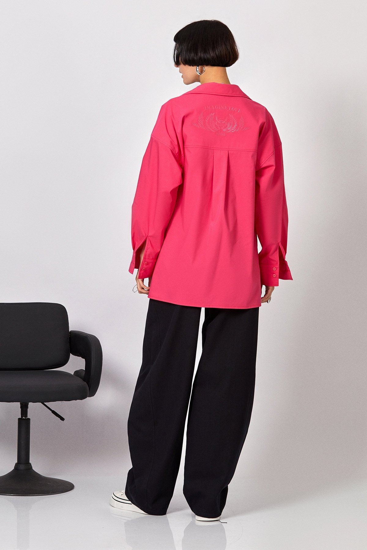 - на спинке переходящая на перед кокетка с вышивкой; от кокетки вниз — бантовая складка