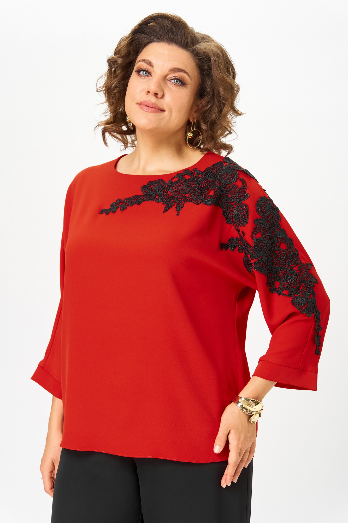 Элегантная женская блузка красного цвета, выполненная из качественной текстильной ткани, идеально подойдет для создания стильного образа. Модель прямого силуэта с цельнокроеными рукавами 3/4, дополненными манжетами, подчеркивает изящество фигуры. Одной из изюминок данной блузки является черная настрочная аппликация на одном из рукавов, добавляющая изделию нотку роскоши и утонченности. Круглый вырез горловины аккуратно обработан обтачкой, а застежка на петлю и пуговицу спине обеспечивает удобное надевание. Длина блузки измеряется в 64 см по спинке, а длина рукава составляет 57 см от крайней точки плеча. Эта модель будет гармонично смотреться как в офисе, так и на выходных мероприятиях.