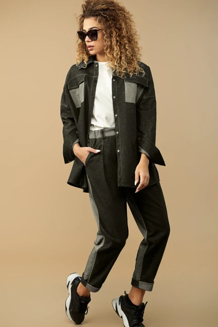 Рубашка со спущенным плечем рукава оканчивается манжетом на кнопке. Центральная застежка на кнопки. По переду и спинке кокетки, на спинке декоративная вышивка. По переду накладные карманы. В боковых швах разрезы. Длина рукава с плечем 72 см Длина рубашки 71 см