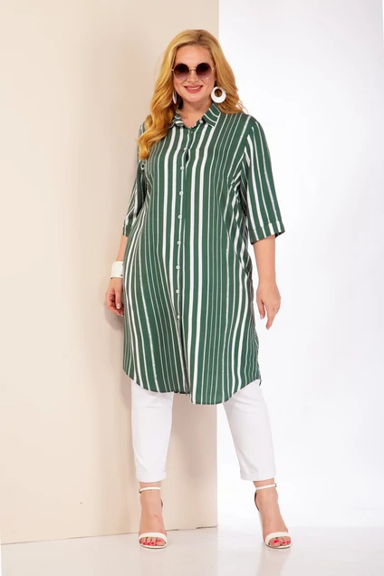 Летнее платье-рубашка в полоску станет идеальной базой Вашего гардероба на весну и лето! Перед с нагрудными вытачками и застежкой на петли и пуговицы. Воротник рубашечного типа с отрезной стойкой. Рукав втачнойт ¾ на манжете. Карманы расположены в боковых швах. За счет вертикального направления линий рисунка фигура кажется еще более стройной и зрительно вытягивается силуэт. Модное платье-рубашка позволит Вам превосходно выглядеть, как на прогулке, на отдыхе, так и в офисе. Его можно носить как самостоятельный элемент образа или дополнять наряды в расстегнутом виде. Длина изделия по спинке 108 см. Длина рукава 40 см.