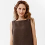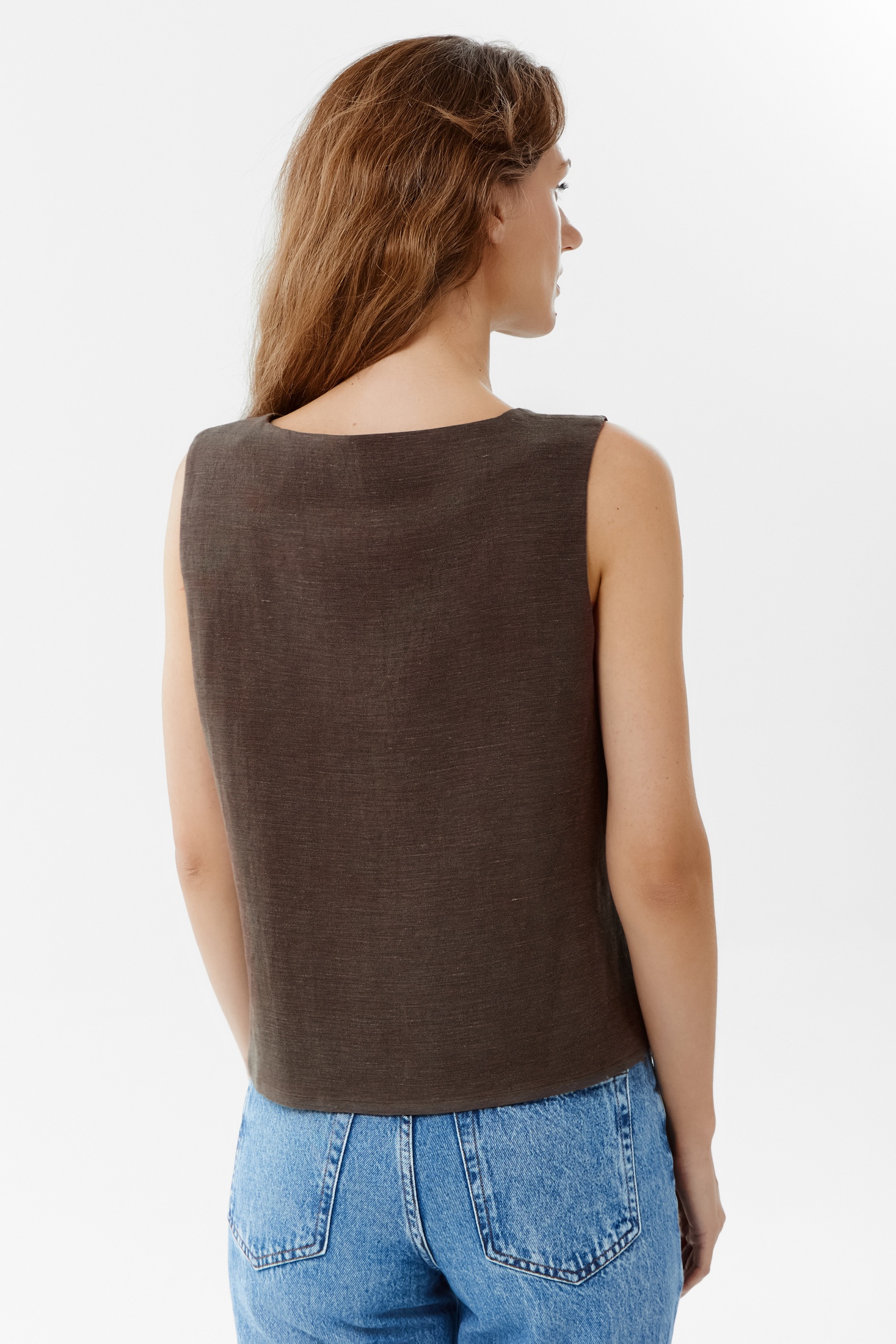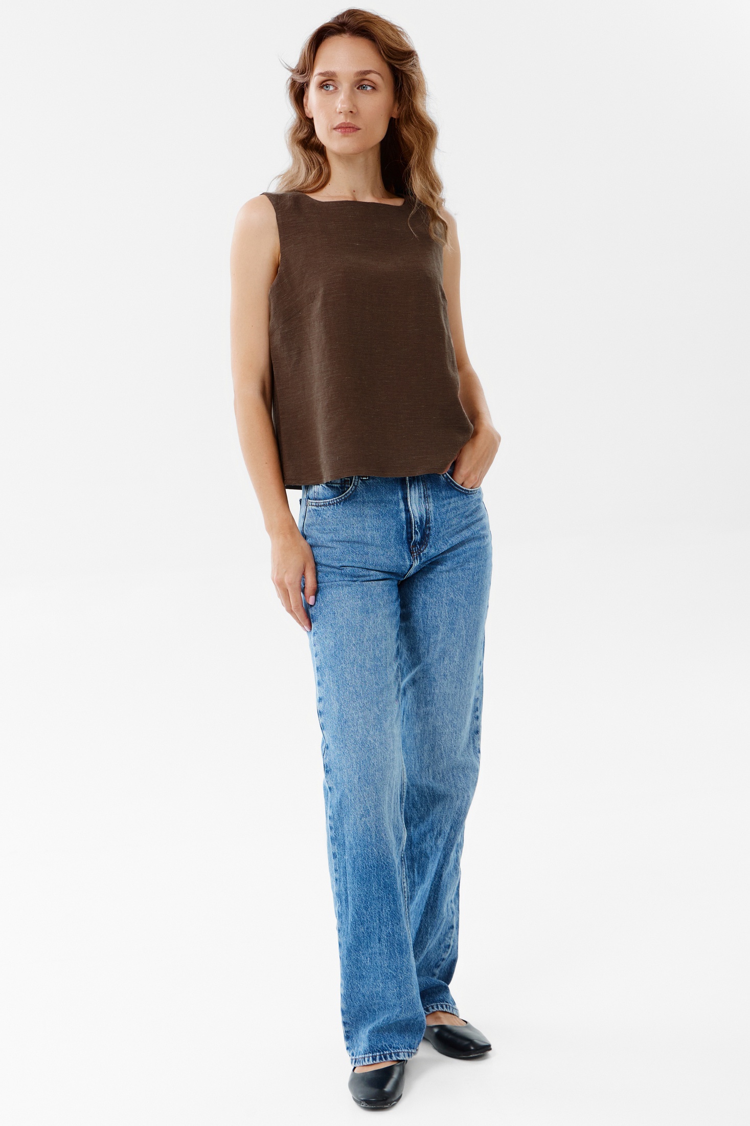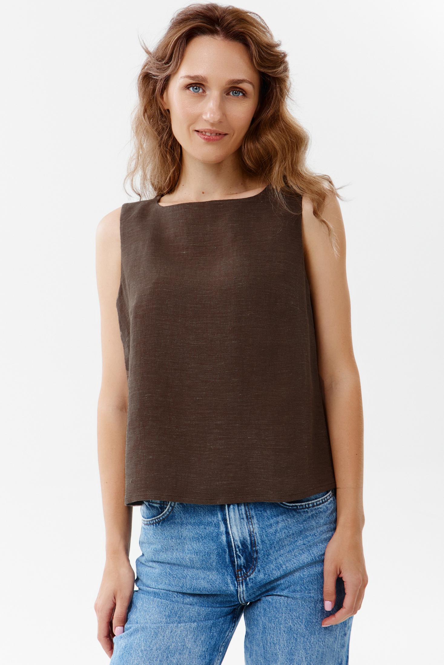 Льняная женская блузка SHLOMO - эталон утонченной простоты и комфорта. Блуза выполнена в темно-коричневом цвете с зернистой текстурой ткани, что добавляет изделию легкости и элегантности. Классический свободный крой и отсутствие застежек подчеркивают минималистичный стиль и делают эту блузу универсальной для любого гардероба. Горловина лодочка красиво подчеркивает линию шеи и плеч. Эта прекрасная блуза будет отлично смотреться как в сочетании с деловыми брюками, так и с повседневными джинсами. Ideal for adding a touch of casual elegance to your everyday ensemble.