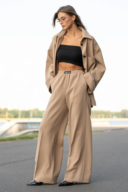 Стильная рубашка в цвете "Camel" свободного, прямого силуэта. На левой полочке накладной карман. Рукав широкий на спущенной пройме. В боковых швах разрезы.Воротник стояче-отложной с отрезной стойкой. В комплект входит пояс -шнур с наконечниками. Длина рубашки по спинке 72 см. Длина рукава от спущенной проймы 53 см. Ширина рукава по низу в полуобхвате 23 см. Длина плечевого шва 21 см. Параметры рубашки в готовом виде в 44-48 р.: обхват груди 118 см, обхват бедер 118 см.