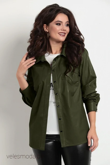 Блузка женская из эластичной эко-кожи. Есть накладные карманы. По переду планка с пуговицами. Воротник рубашечного типа. Рукава втачные, длинные, по низу со складками и манжетой на 2 пуговицах. Спинка прямого силуэта с двумя встречными складами. Длина рукава в 50р-62см,длина изделия по центру спинки-74,5см.