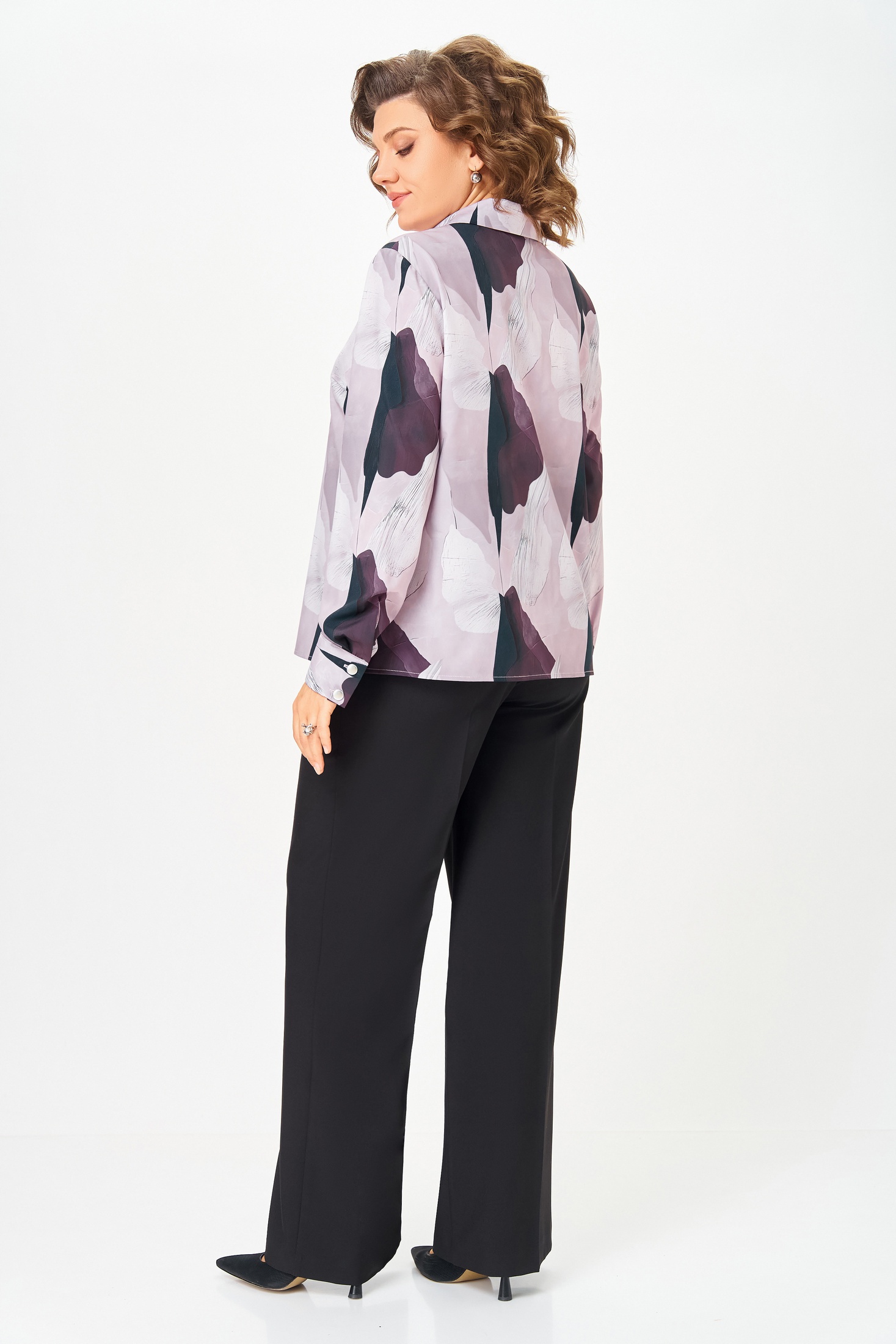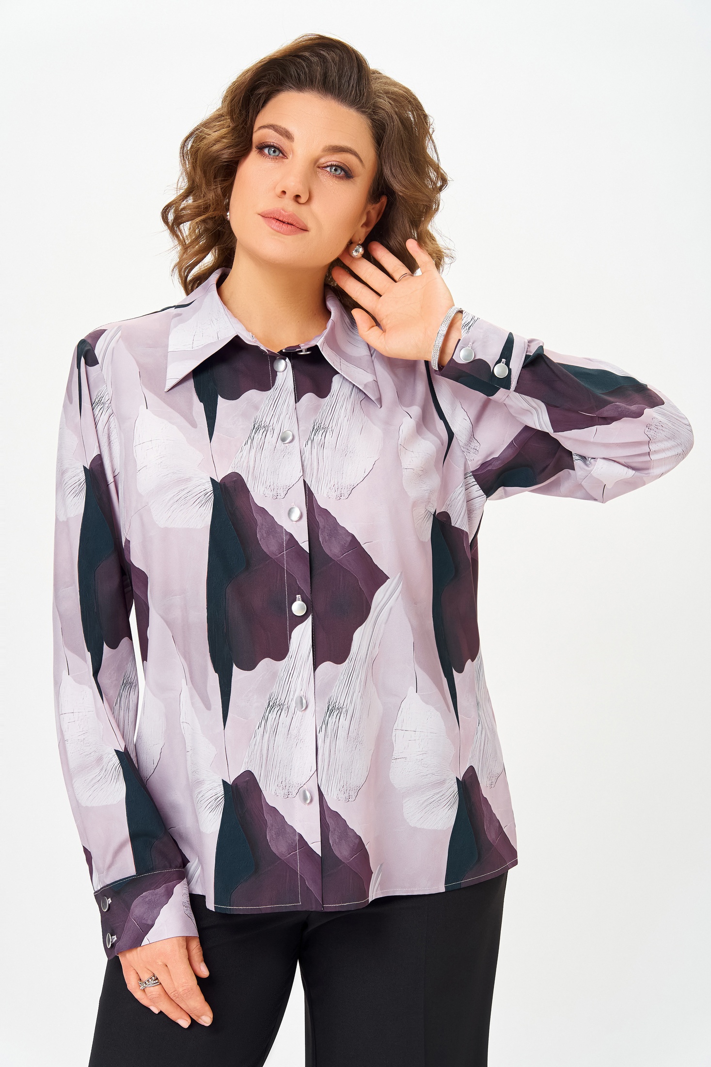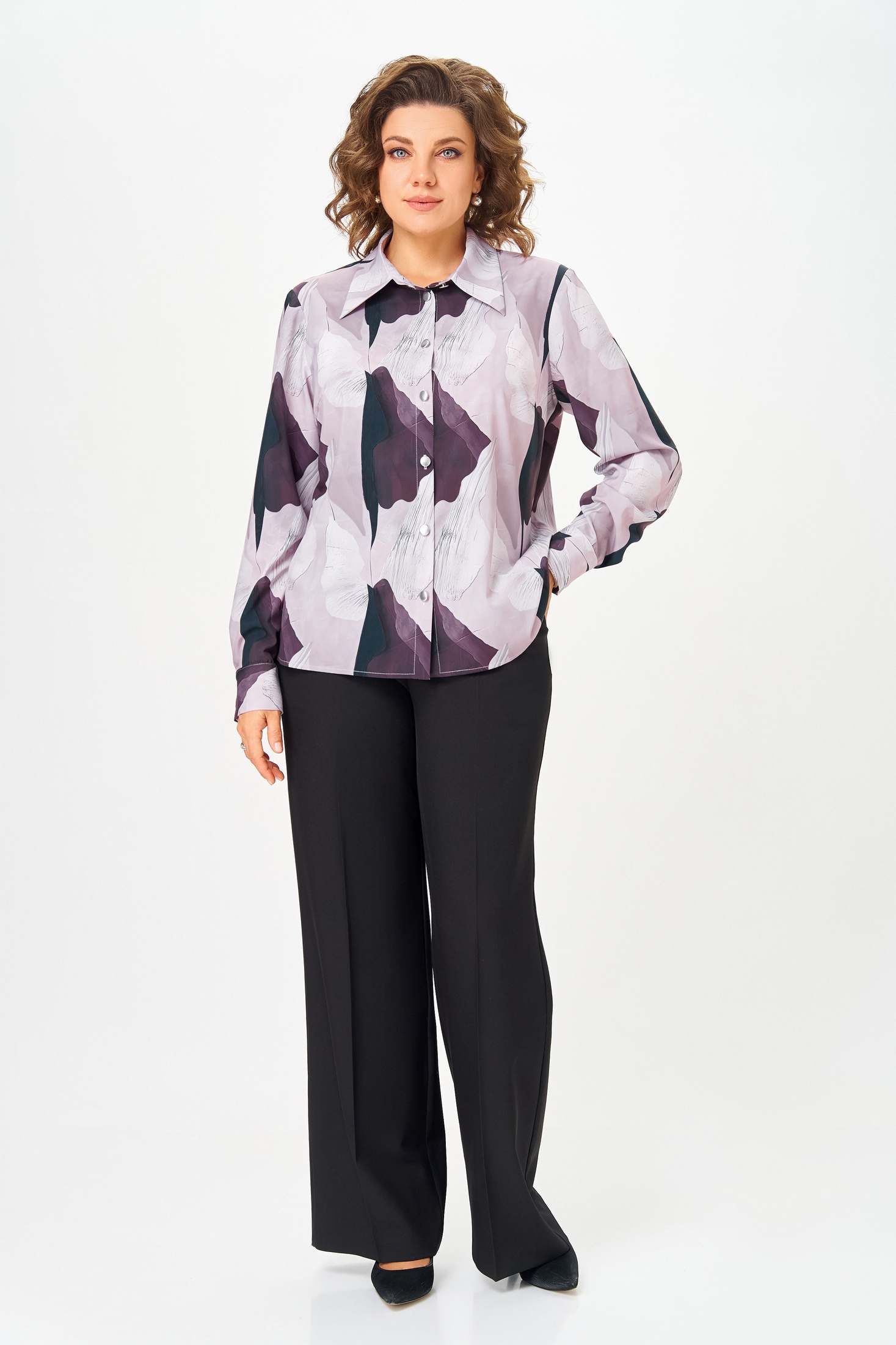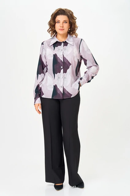 Блузка из вискозной ткани, прямого силуэта с центральной застёжкой на петли и декоративные пуговицы. Перед с нагрудными вытачками. Спинка цельная. Воротник рубашечного типа с отрезной стойкой. Рукав втачной одношовный с манжетой, которая застёгивается на две петли и пуговицы. Длина по спинке р.50,52,54 – 63 (+/- 1) см. Р.56,58,60 – 66 (+/-1) см, длина рукава – 66 (+/-1) см.
