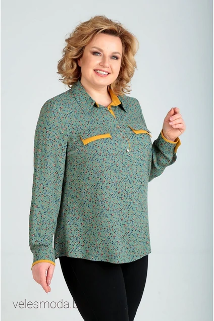 Рубашка 62221 зеленый+горчичная отделка Tair-Grand