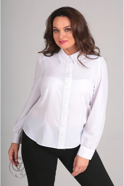 Блуза женская, приталенного силуэта с нагрудными и талевыми вытачками. Воротник на стойке, рубашечный. Застежка центральная, на планку, к правой стороне которой настрочено кружево. Рукав втачной. М 62317 46 48 50 52 54 56 Длинна спинки, (см) 58 58 60 60 62 62 Ширина спинки, (см) 38 38 40 40 42 42 Ширина под проймой, (см) ПОГ 48 50 52 54 56 58 Ширина по бедрам, (см) 49,5 51,5 53,5 55,5 57,5 59,5 Ширина плеча, (см) 10,5 10,5 11 11 11,5 11,5 Длина рукава, (см) 63,5 63,5 63,5 63,5 63,5 63,5 Ширина рукава под 36 38 38 40 40 42 проймой (обхват) (см)