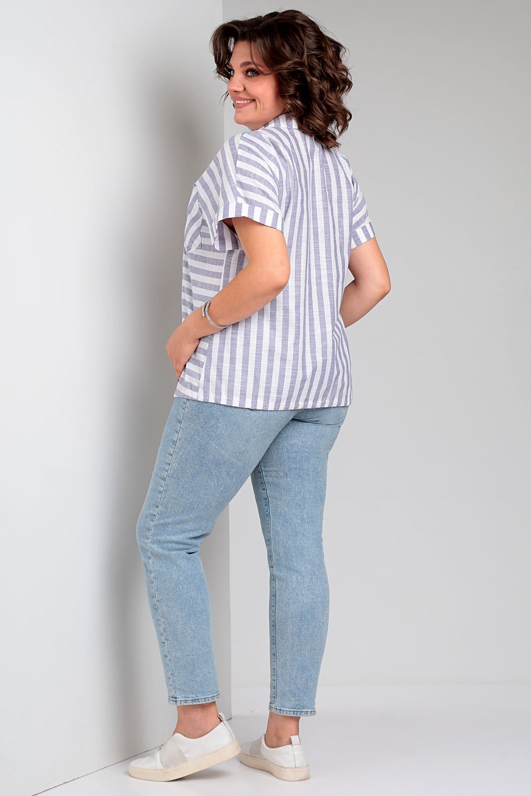 Модная блузка спортивного стиля свободного силуэта, идеально подходящая для повседневного образа. Изготовлена из 100% хлопка в полоску, благодаря чему блузка приятна к телу и обеспечивает комфорт в носке. Ее особенности включают в себя фиксацию по бедрам отделочным шнуром, придающим изюминку образу. Рукав цельнокроеный, выполнен в стиле «летучей мыши», что добавляет блузке легкости и свободы движения. Манжеты рукавов притачные, пополам завернутые, что создает интересный акцент на руках. Воротник рубашечного типа с высокой стойкой придает блузке элегантность и строгость. Застежка блузки центральная, с двумя пуговицами сверху, что добавляет элементы стиля и оригинальности. Наглухо зашитый центр полочек под пуговицами придает блузке аккуратный вид. На левой полочке настрочен нагрудный карман, который дополняет функциональность блузки. Левая полочка выполнена из отделочной ткани, сочетающейся по цвету с основной тканью, что придает блузке дополнительный шарм и интересный контраст. Украшением блузки служит вышивка на кармане, расположенном на левой полочке. Этот декоративный элемент добавляет блузке индивидуальности и оригинальности, делая ее стильным акцентом любого образа. В целом, эта блузка отличается не только своим уникальным дизайном, но и комфортной посадкой, что делает ее отличным выбором для тех, кто ценит стиль и удобство.