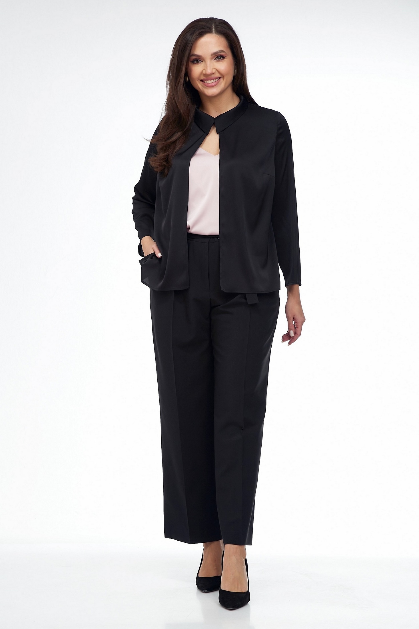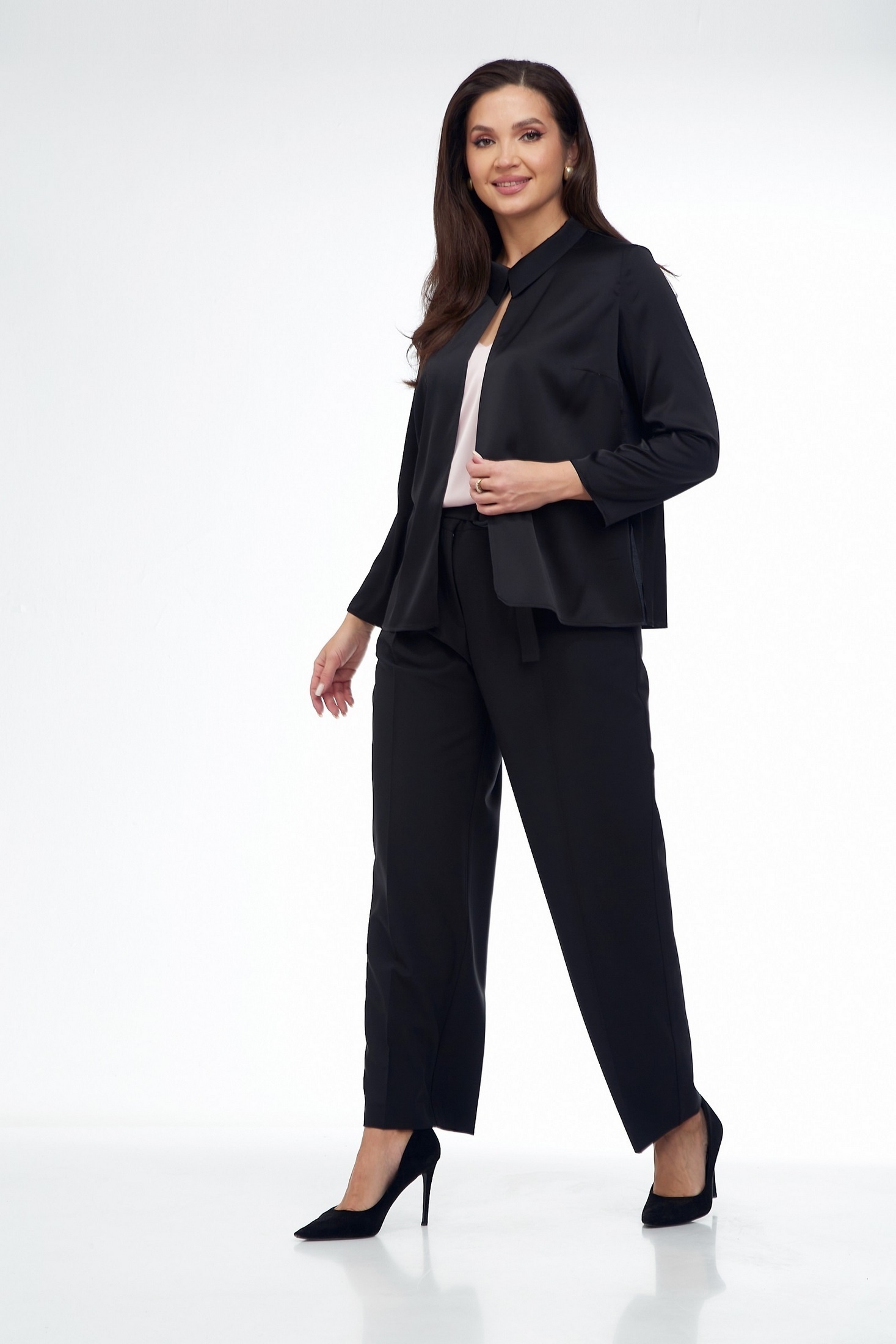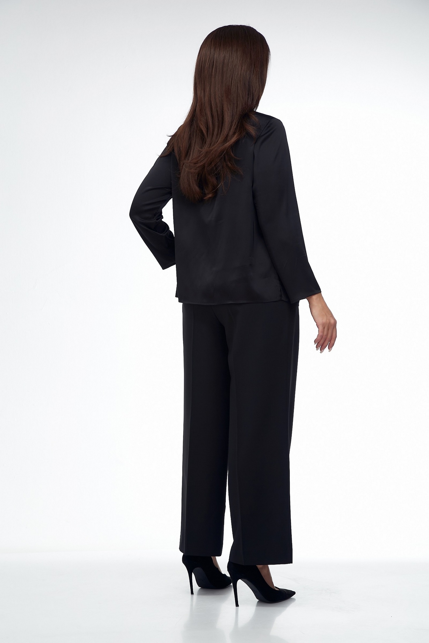 Элегантная блуза черного цвета из легкой атласной ткани представляет собой изысканный выбор для создания делового или вечернего образа. Блуза выполнена в прямом силуэте, обогащенном нагрудными вытачками для лучшей посадки. Модель имеет укороченные одношовные втачные рукава, добавляющие стильный акцент. Круглый горловой вырез и отложной воротник придают блузе официальный вид, делая ее универсальным элементом гардероба. Застежка на петлю и пуговицу незаметно вписывается в общий дизайн. Длина изделия по спинке составляет 63 см, а длина рукава — 56 см, что обеспечивает комфорт при носке. Эта блуза идеально сочетается как с классическими брюками, так и с юбками.