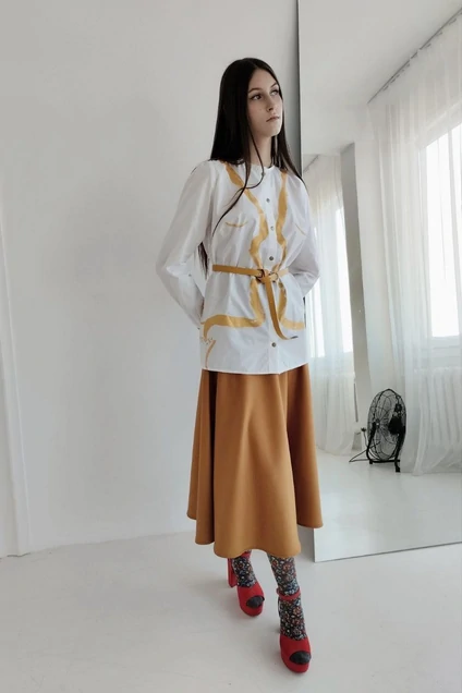прямая рубашка со сборочкой по окату,на кнопках.Принт закреплен