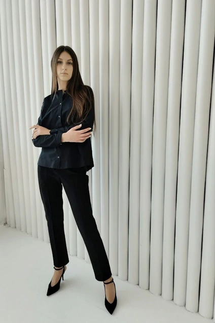 Классическая рубашка с прозрачными пуговицами,по спинке складка.