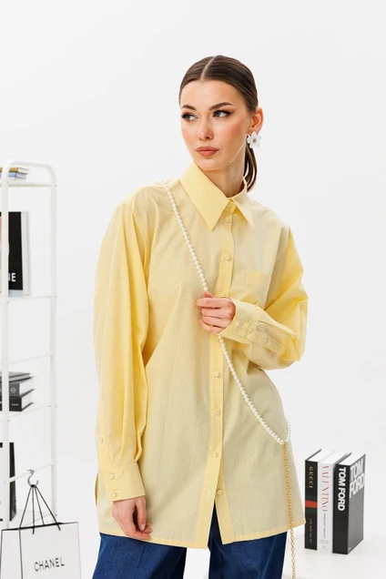 Превосходная рубашка оверсайз прямого кроя из хлопковой ткани с карманом на груди, застежкой- пуговица на манжете. Идеально сочетается с повседневным образом и вечерним нарядом. Изумительная пуговица обшита в ткань из остновного материала, дополняет образ стильной Леди. Премиальное качество.