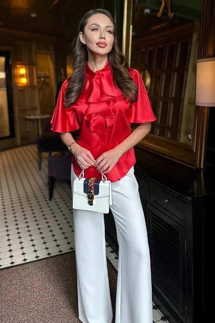 Эта нарядная блузка - идеальное решение для создания изысканного и элегантного образа. Блузка идеально сочетается с различными вариантами низа - от юбки-карандаша до классических брюк или джинсов. Она станет отличным выбором для работы, вечернего выхода или особого случая, когда вы хотите выглядеть стильно и элегантно. Блуза женская прямого силуэта может быть как нарядная, так и для повседневной носки.