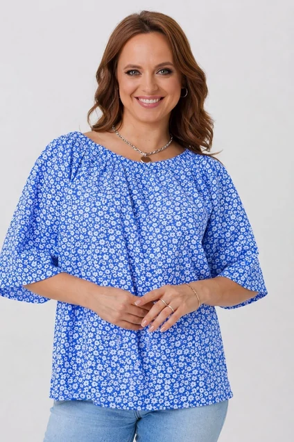 Блузка 1251-1 голубой Anastasia - это легкая летняя модель из коллекции бренда Anastasia, выполненная из натурального хлопка. Приятная на ощупь и воздухопроницаемая ткань обеспечивает комфорт в жаркие дни. Свободный крой и привлекательный цветочный принт делают блузку универсальной для любого случая. Открытые плечи и длина рукава 3/4 придают образу элегантность и женственность. Идеальный выбор как для повседневного, так и для офисного гардероба. Длина по спинке составляет 60-63 см, что обеспечивает удобную посадку на любой фигуре. Изделие отлично подходит для использования в летний сезон, даря ощущение легкости и свободы движений.