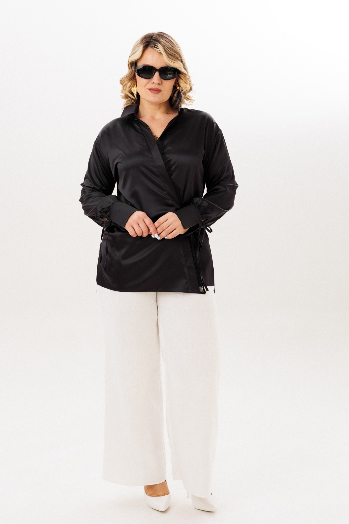 Блузка 1342 черничный Anastasia представляет собой стильное решение для любого повода. Коллекция бренда «Анастасия» предлагает универсальную блузку из атласной ткани, которая отличается комфортом и качеством. Прямой силуэт со спущенным плечом и разрезами по бокам обеспечивает удобство и стиль. Рукава с манжетой и завязками добавляют оригинальности, а кружевная отделка и застежка в виде запаха создают элегантный образ. Воротник на отрезной стойке подчеркивает офисный стиль, делая блузку подходящей для работы и повседневных мероприятий. Длина по спинке: (50-54)-76 см, (56-60)-79см; длина рукава с манжетой: (50-54)-57 см, (56-60)-59см. Цвет черничный идеально сочетается с другими элементами гардероба, делая эту блузку незаменимой для весны и лета.