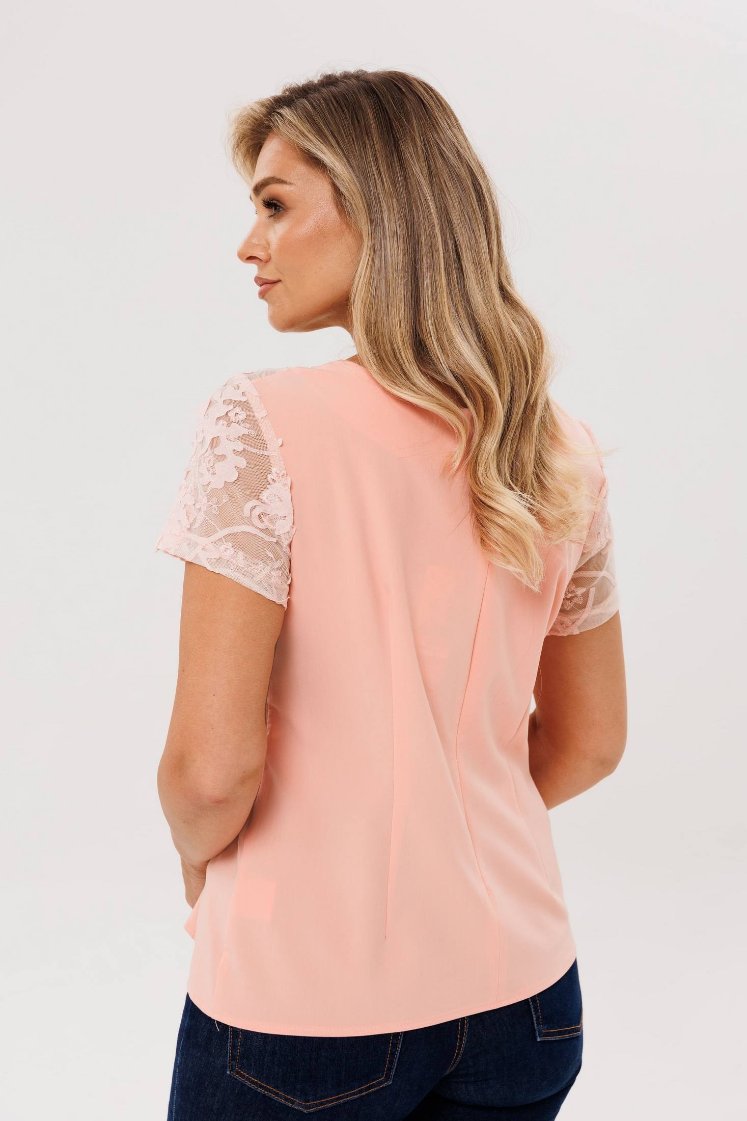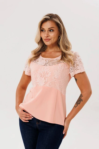Блузка 1653 персиковая дымка Anelli является воплощением мягкости и утонченности. Коллекция бренда Anelli отличается нежностью, и эта модель – не исключение. Изготовленная из полиэстера, вискозы и эластана, блуза обеспечивает комфорт и легкость ухода. Полуприлегающий фасон с кружевным лифом и округлым вырезом подчеркивает женственность, а слегка расширенная нижняя часть добавляет легкости. Короткий втачной рукав из кружева создаёт романтичное настроение, а скрытая молния на спинке сохраняет чистоту линий. Персиковый оттенок делает её идеальной для весенне-летнего сезона, легко сочетаясь с разнообразными элементами гардероба, придавая свежесть ежедневным образам.