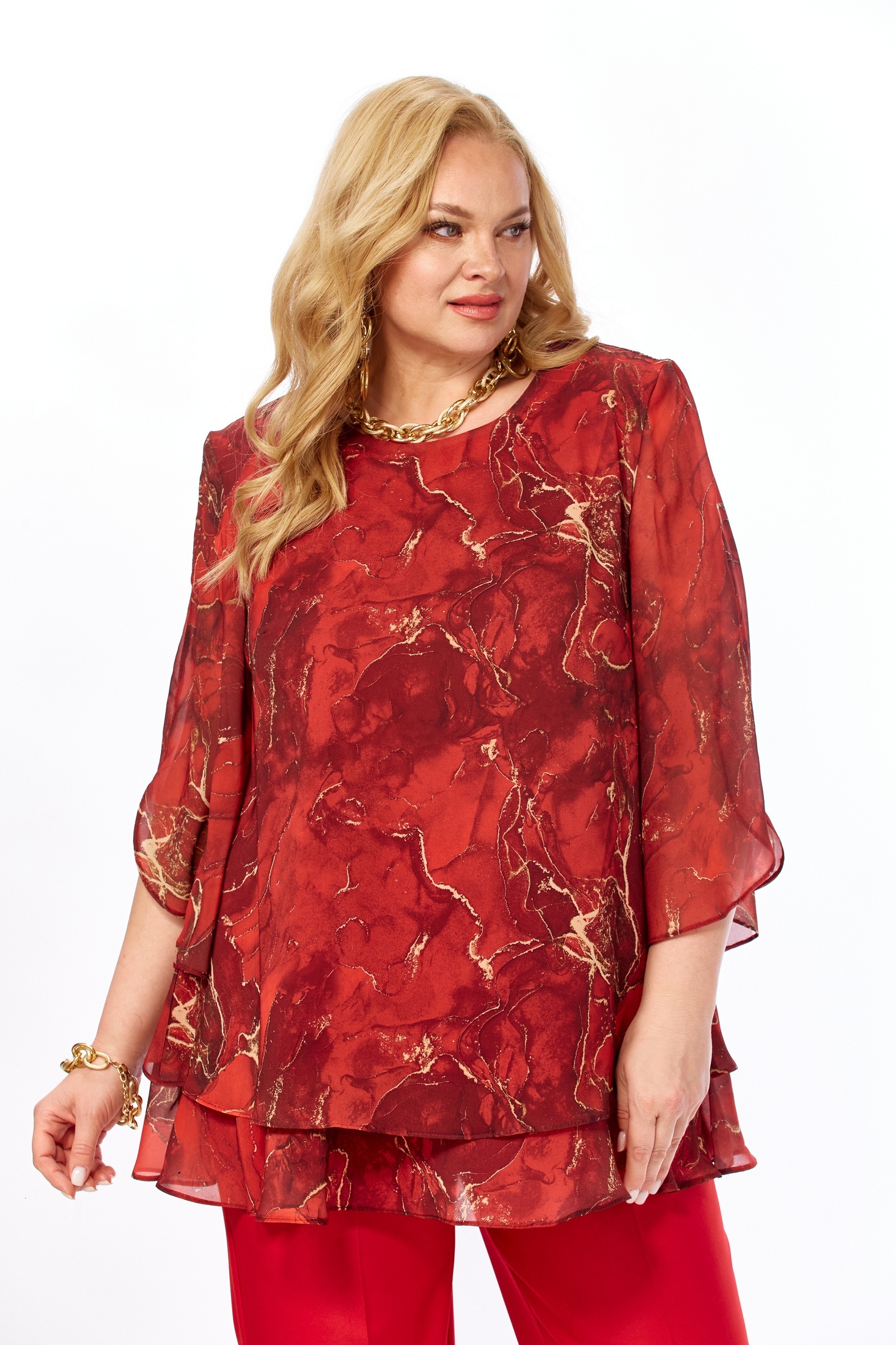 Блузка 2213-16а красный мрамор Элль-стиль