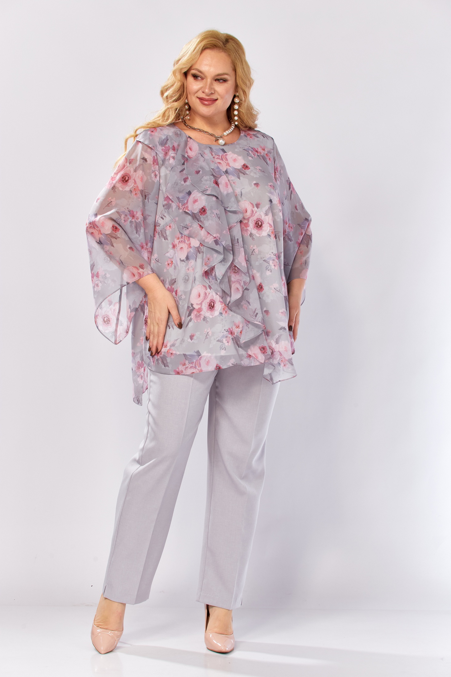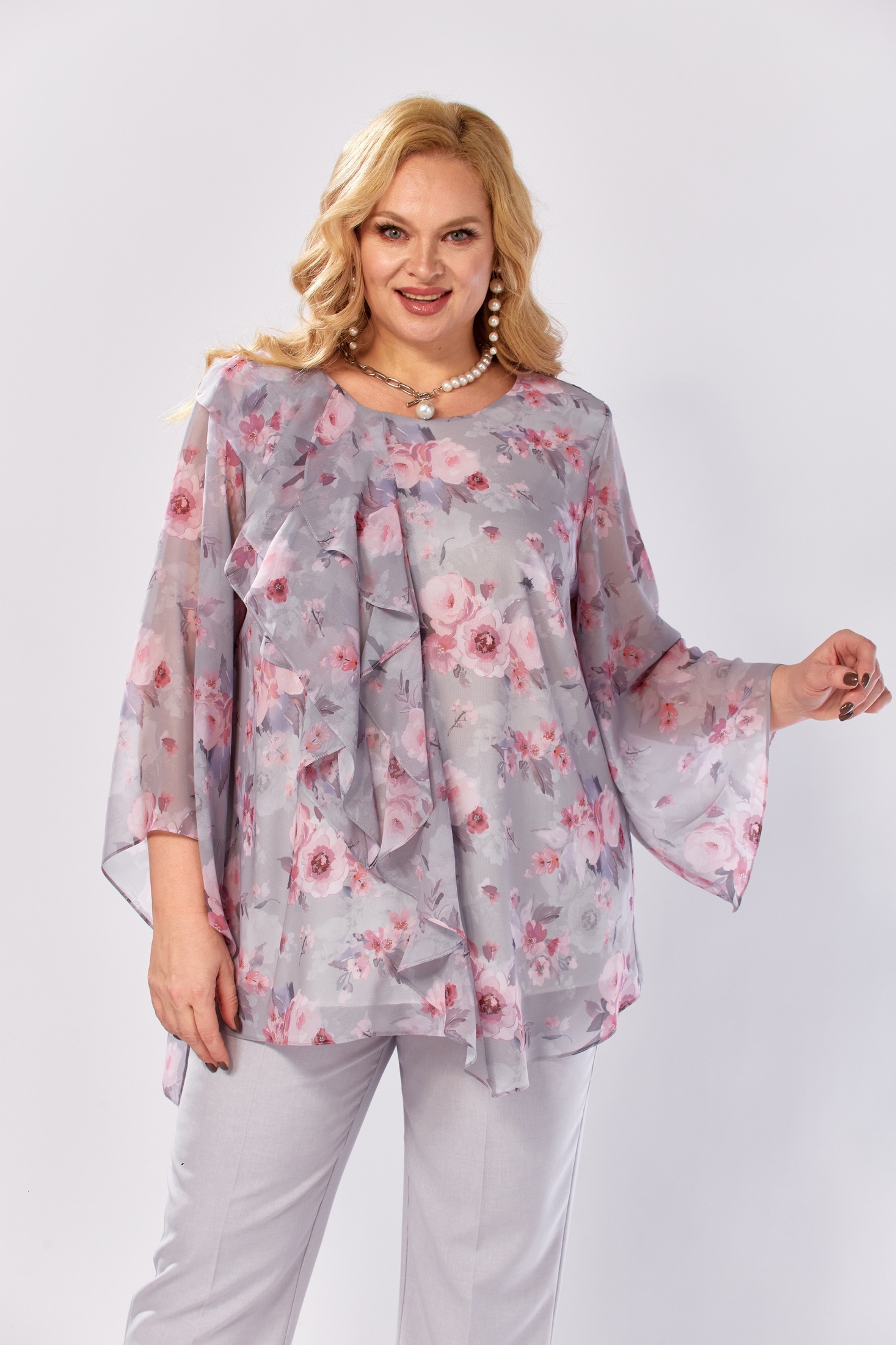 Блузка 2460а Элль-стиль от коллекции бренда Элль-стиль — это изысканное сочетание стиля и комфорта. Изготовлена из легкого шифона, она создает воздушный эффект и приятна к телу. Ассиметричный низ и свободный рукав создают современный вид, делая эту блузку подходящей для вечерних мероприятий. Округлая горловина и вертикальные воланы добавляют нежности цветочному принту, который идеально подойдет для весенне-летнего сезона. Приталенный фасон подчёркивает фигуру, а расширенные рукава обеспечивают удобство. Вертикальные рельефы делают акцент на грациозности образа, внося в него женственное очарование.