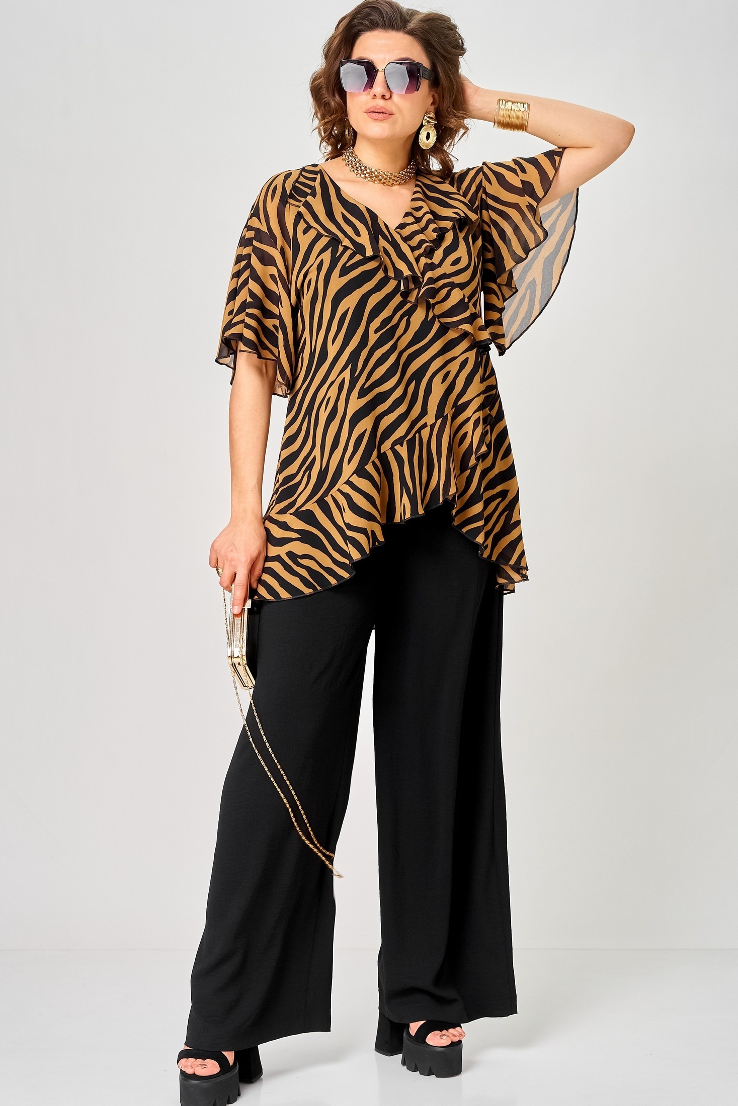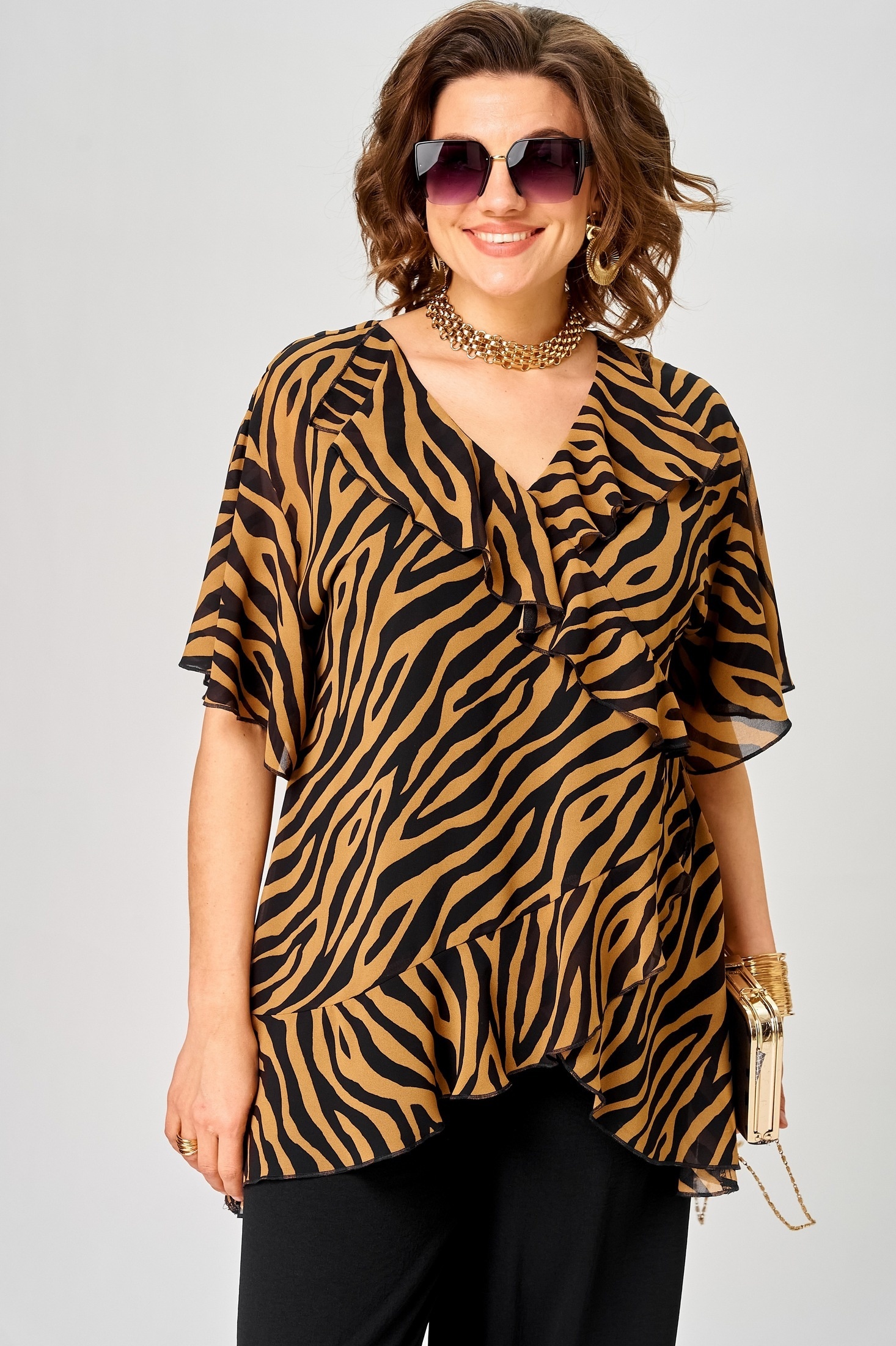 Блузка 198-1 принт зебра + кофе EVA GRANT