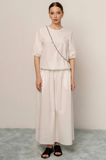Блузка 2588 JRSy из коллекции бренда JRSy представляет собой молодежную модель в однотонном исполнении. Изготовленная из смеси хлопка, полиэстера и спандекса, она обеспечивает комфорт и долговечность. Прямой силуэт и эластичная тесьма по низу придают изделию стильный вид. Блузка идеально подходит для повседневного гардероба, подчеркивая свободу движений благодаря отсутствию подкладки и застежек. Эластичная тесьма по низу рукава добавляет дополнительный акцент. Белый цвет делает её универсальной для любого сезона, от весны до осени. Длина изделия составляет 55,5 см, а ширина по линии груди и талии варьируется в зависимости от размера.