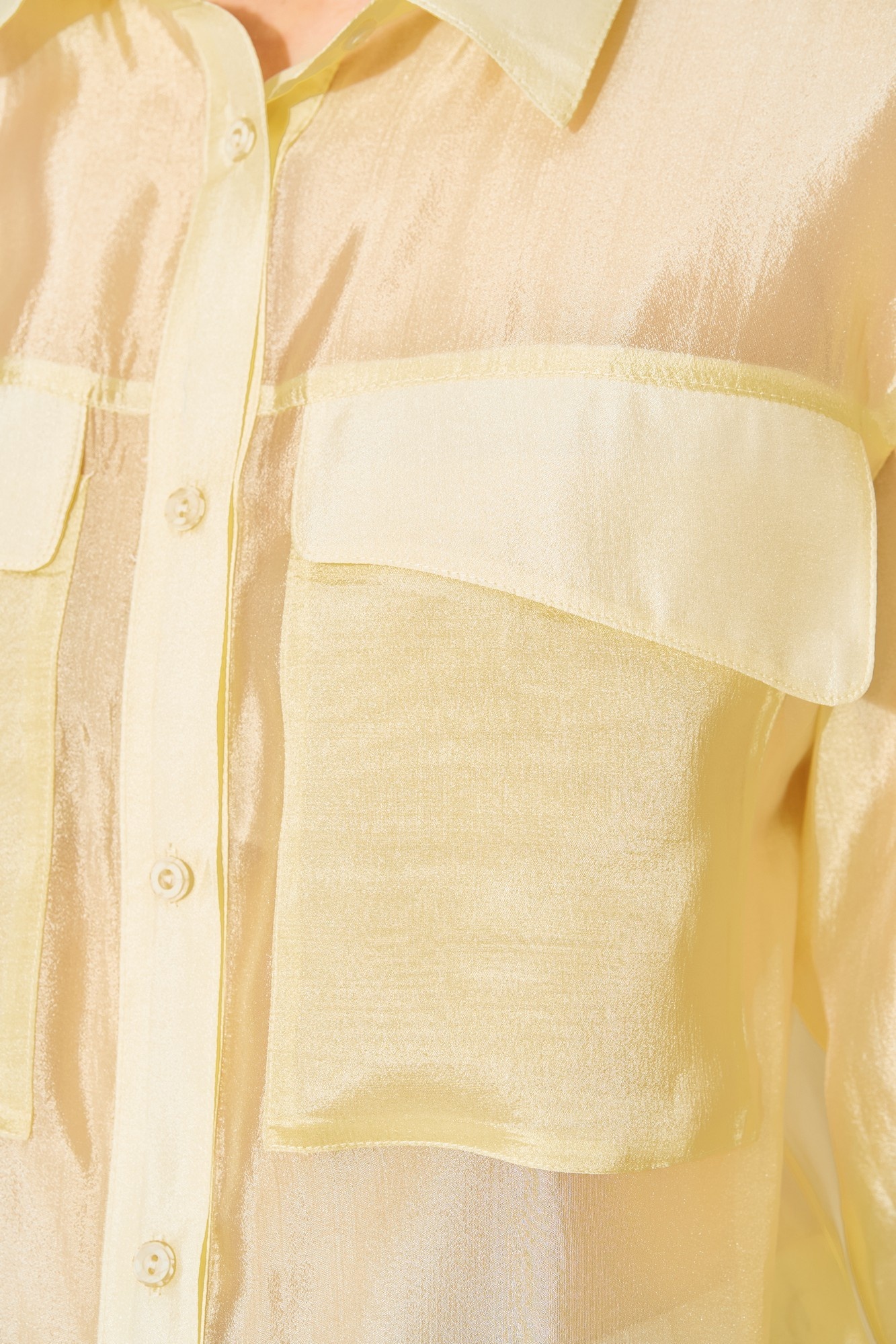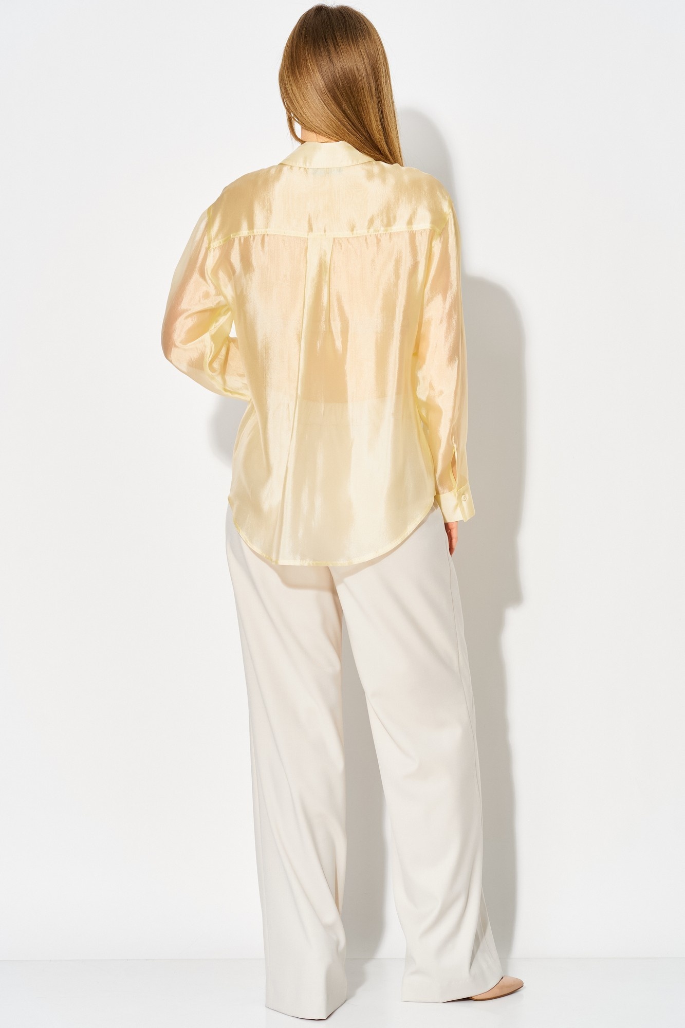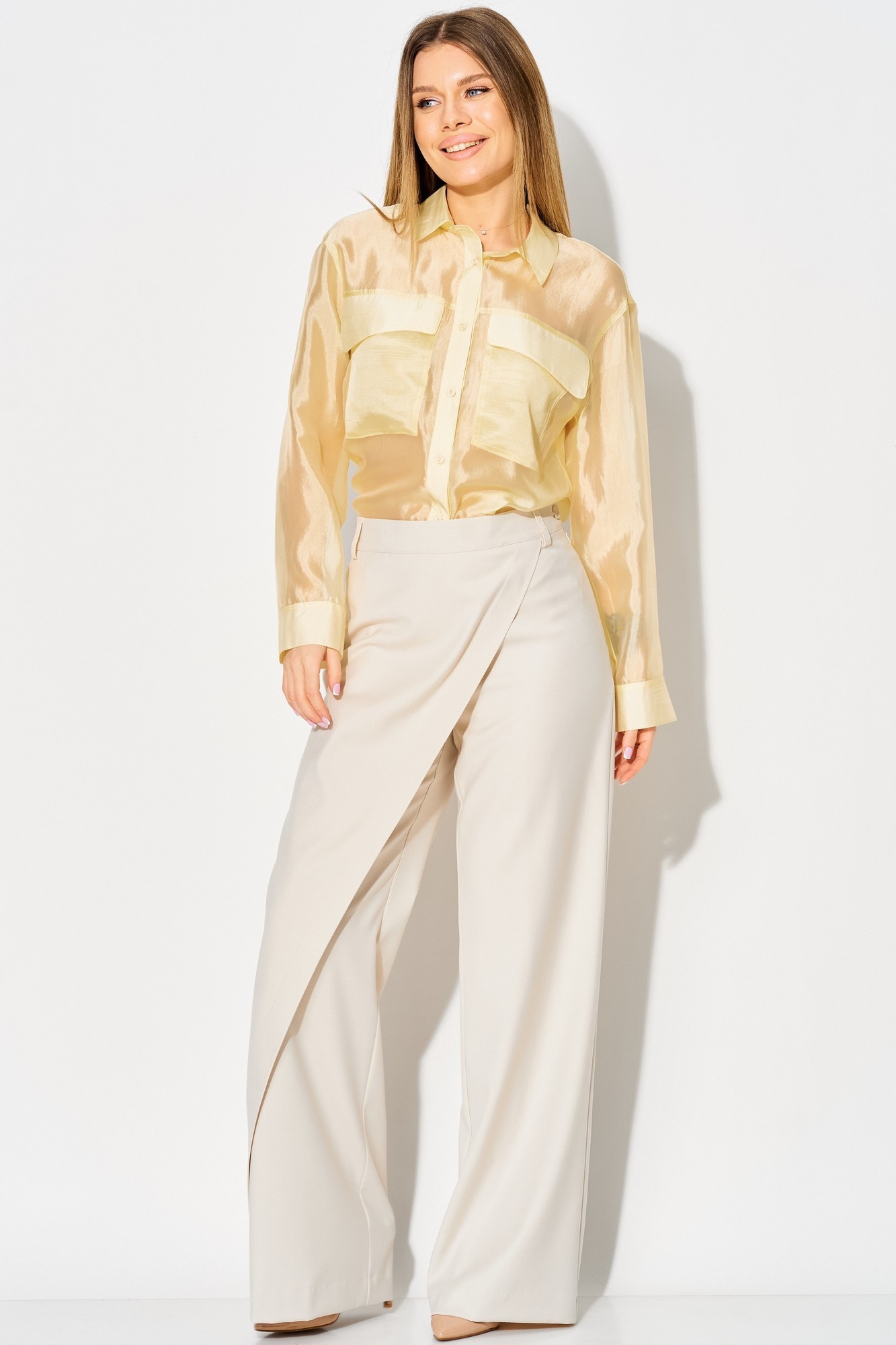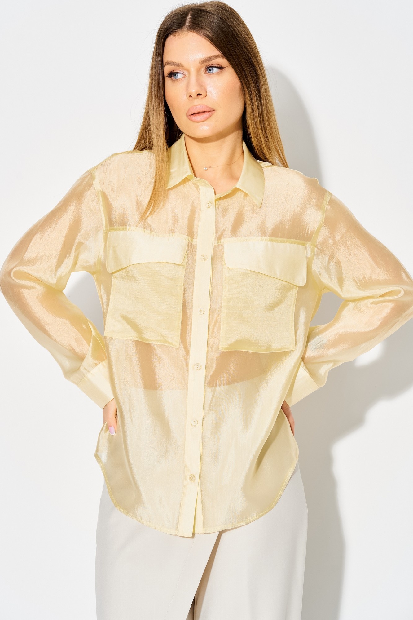 Блузка 382-1 дюна LAIKONY — это стильный выбор из коллекции бренда LAIKONY. Выполненная из полупрозрачной вискозной органзы, она дарит легкость и элегантность. Полуприлегающий силуэт длиной ниже линии бедер и спущенное плечо создают романтичный образ. Классический рубашечный воротник и центральная застежка на шесть пуговиц добавляют нотку традиции. Украшенная кокетками и накладными карманами, блузка акцентирует внимание на современных деталях. Складка по центру спинки и манжеты с застежками на пуговицы делают образ завершенным. Это идеальный вариант для весеннего сезона, который легко сочетать как с деловым, так и с повседневным стилем. Длина изделия по спинке составляет 69-72 см, а длина рукава 55,2-55,8 см, в зависимости от размера.