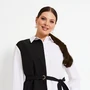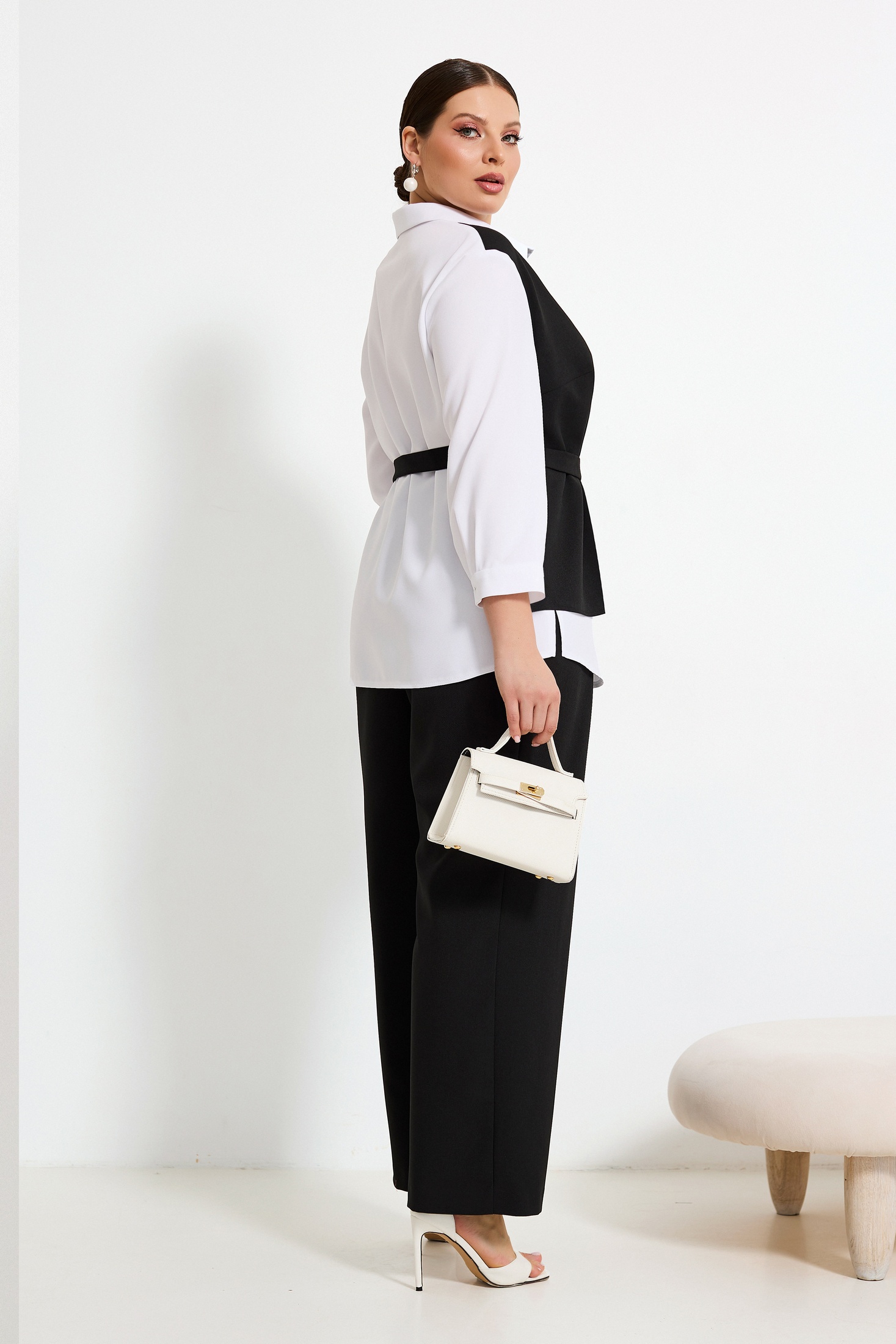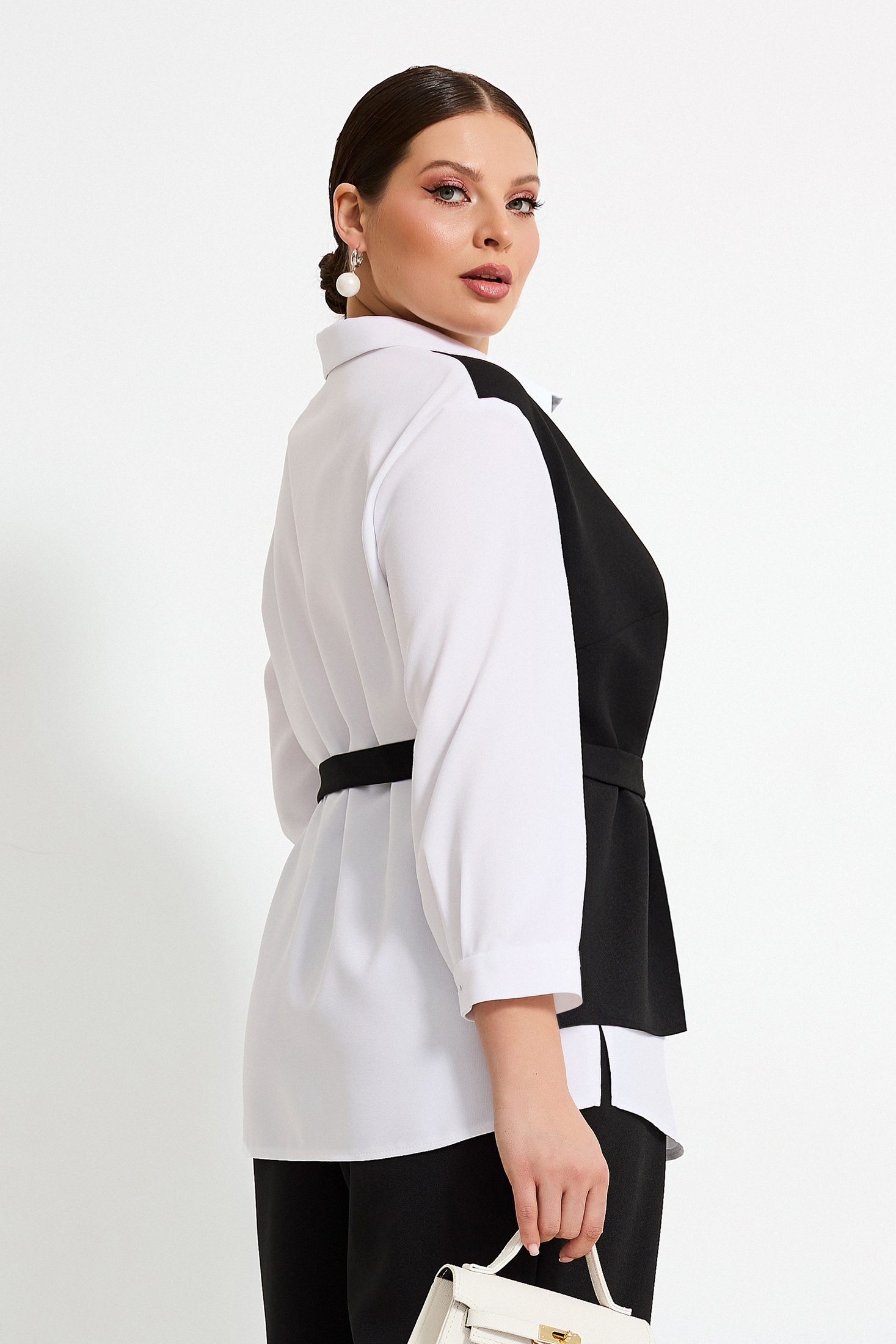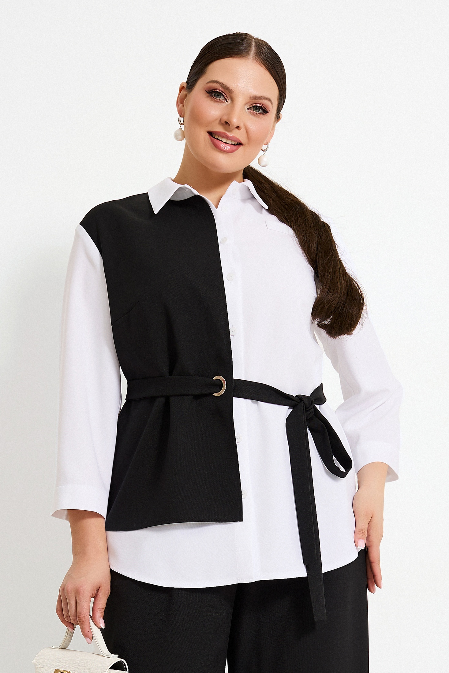 Блузка 4937 Lissana — это стильный выбор для современного гардероба. Коллекция бренда Lissana предлагает комбинированный дизайн с контрастной вставкой из ткани, добавляющей оригинальность вашему образу. Блузка выполнена из полиэстера, хлопка и вискозы, что гарантирует комфорт и легкость в носке. Она оснащена съёмным поясом для акцентирования талии и декоративными манжетами на рукавах. Элегантный воротник-стойка и застежка на пуговицы придают изделию завершенный вид. Универсальный черно-белый цвет делает эту блузку идеальной для офисного или повседневного образа, подходящей для носки в демисезон. Блузка с длиной по спинке, создавая современный силуэт.