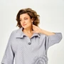 Женская блуза в стиле «бохо» прекрасно вольется в повседневную жизнь и станет одной из любимых базовых вещей в Вашем гардеробе. Блуза свободного кроя. Перед цельный с планкой-застежкой до груди. Спинка с плечевой кокеткой, переходящей в рукав. Рукав 3/4 с притачной манжетой по низу. Из-под кокетки спинки — декоративная строчка, обработанная тесьмой, фигурный низ, по бокам изделия разрезы. По низу переда широкая подгибка. Декорирована блуза настрочным цветком. Изделие хорошо сочетается как с брюками, так и с юбками, с классической и спортивной обувью. Длина изделия по спинке 74 (+/- 1 см). Длина рукава от горловины 55 (+/- 1 см). Изделие подойдет на рост 170 см.