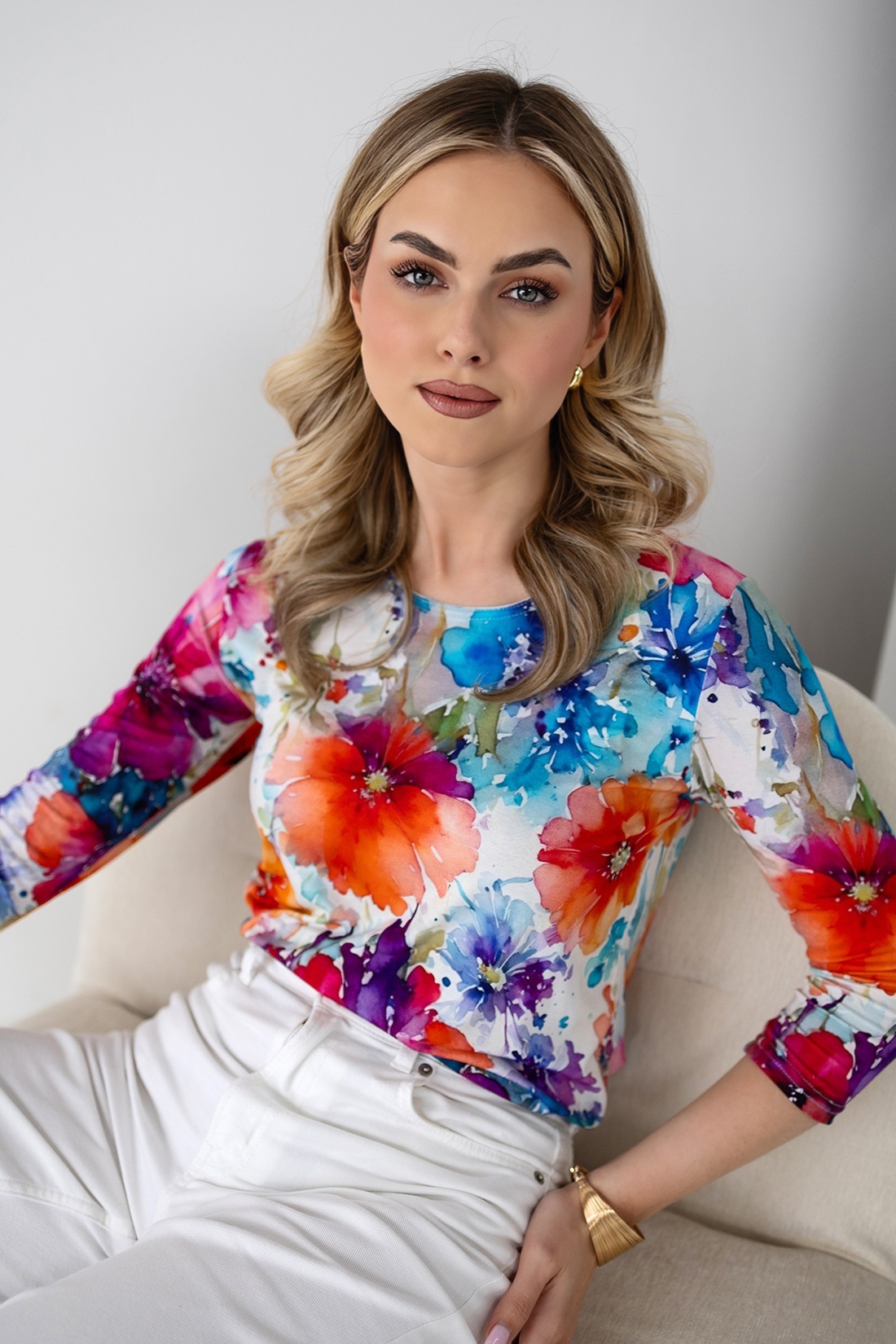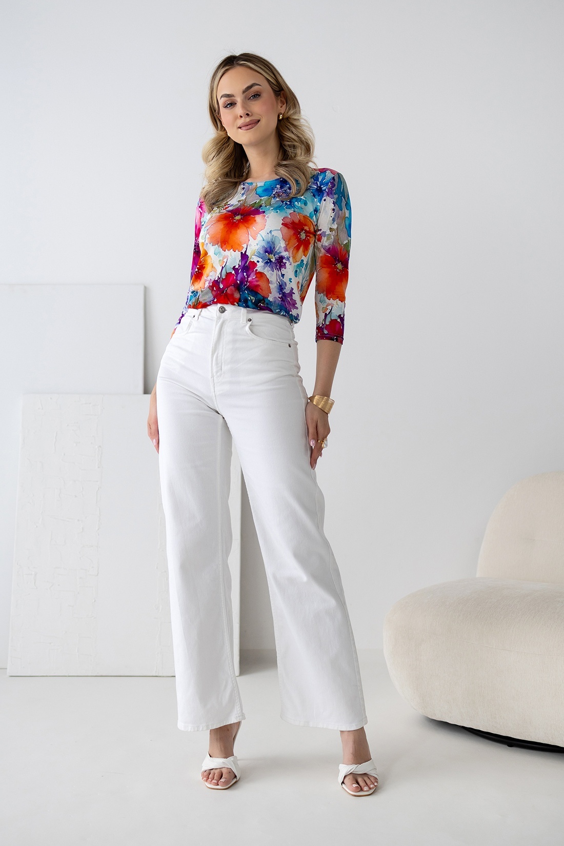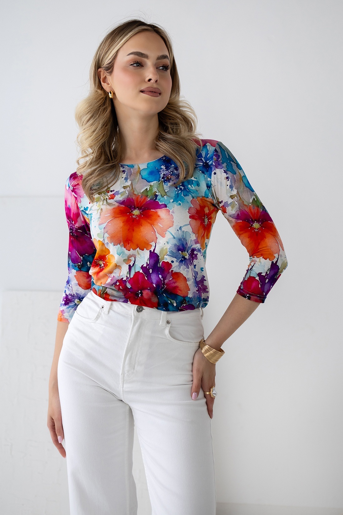 Блузка 010126 Nika.pl — это стильное и современное решение для вашего гардероба. Коллекция бренда Nika.pl предлагает блузку прямого силуэта с круглым вырезом горловины, визуально удлиняющим шею. Изготовленная из вискозы с добавлением эластана, эта блузка мягкая и эластичная, обеспечивая комфорт в течение всего дня. Рукава длиной 3/4 добавляют изящества, а яркие дизайны и цветочный принт делают её ярким акцентом вашего образа. Практичная и удобная, она станет отличным выбором для весенне-летнего сезона. Блузка великолепно сочетается с брюками и юбками, позволяя создавать разнообразные образы.